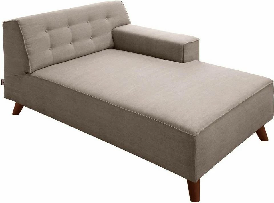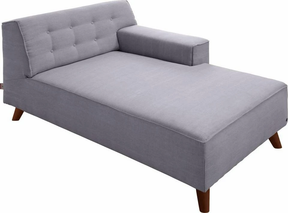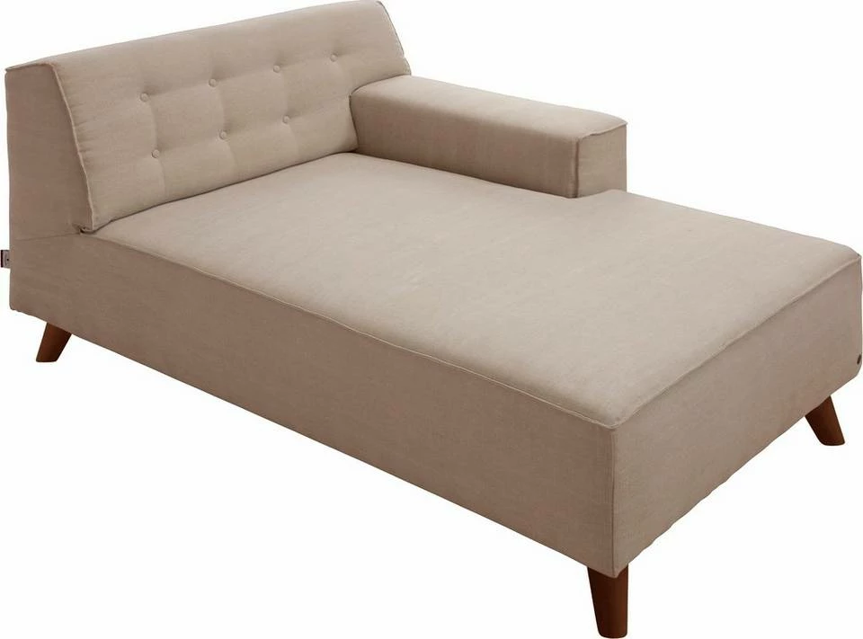 Die Serie »NORDIC CHIC« bietet ein ganz neues Gefühl für Ihr Zuhause. Die bequemen Polstermöbel sind mit auffälligen Holzfüßen ausgestattet, die das Design unterstreichen. Das Fußgestell ist wahlweise wengefarben, nussbaumfarben oder in Buche natur erhältlich. Besonders gut lässt sich »NORDIC« mit der TOM TAILOR Serie »COZY« kombinieren. Die schicke Recamiere »NORDIC CHIC« steht für die hochwertige Umsetzung des Retrotrends. Die Chaiselongue kombiniert eine edle Knopfheftung mit Kederverarbeitung und ausgestellten Holzfüßen in Buche natur. Die Recamiere »NORDIC CHIC« ist eine tolle Alternative zu einer Polsterecke. Kombiniert man den Longchair mit dem Einzelsofa »NORDIC CHIC«, entsteht eine schöne Sitzgruppe mit den typischen Ecksofa-Elementen. Ein besonders gemütliches Ergebnis erzielt man durch das Zusammenstellen von zwei »NORDIC CHIC« Recamieren mit spiegelverkehrten Armlehnen. So bilden die Möbelstücke eine riesige Relaxwiese, die zum Entspannen einlädt.