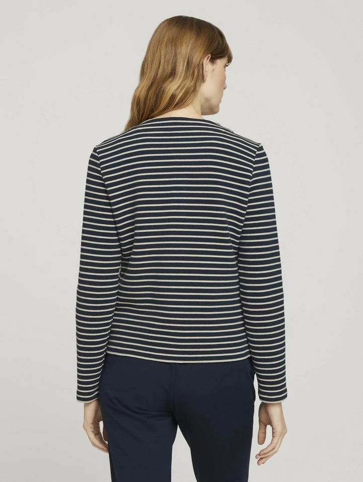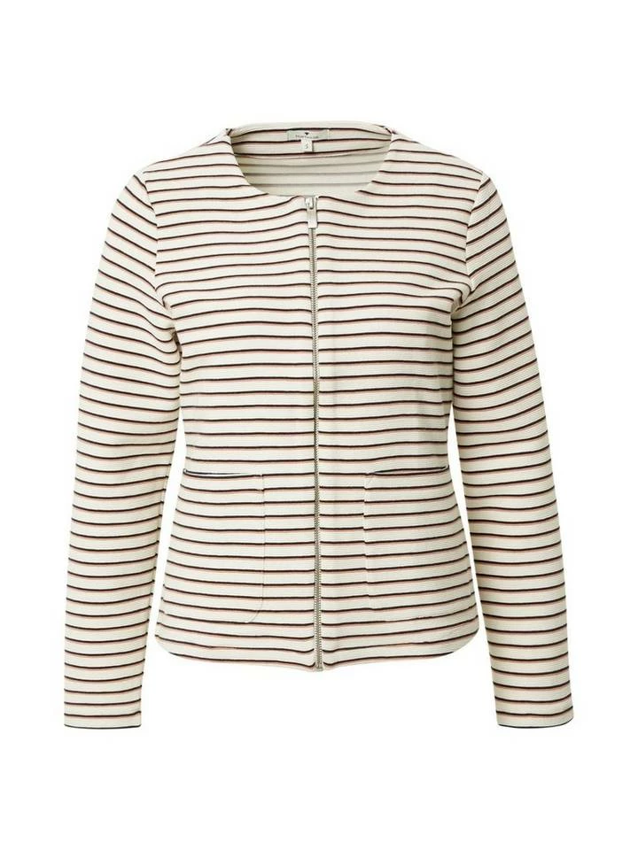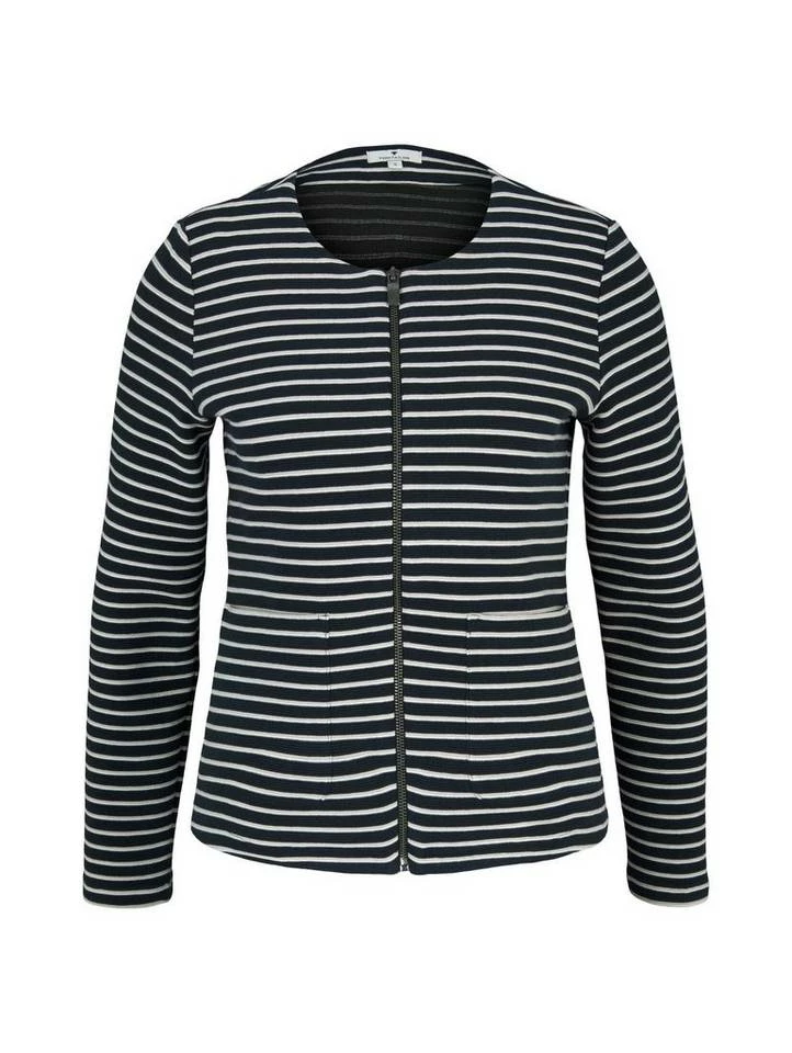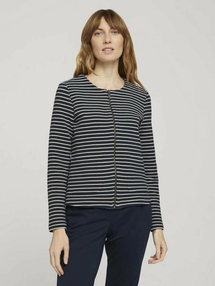 Gestreifter Blazer mit Struktur für Frauen (langärmlig mit Rundhalsausschnitt und Reißverschluss) aus dehnbarem und pflegeleichten Baumwollgemisch, gestreift, mit Ottoman Struktur, aufgesetzte Taschen auf der Frontseite