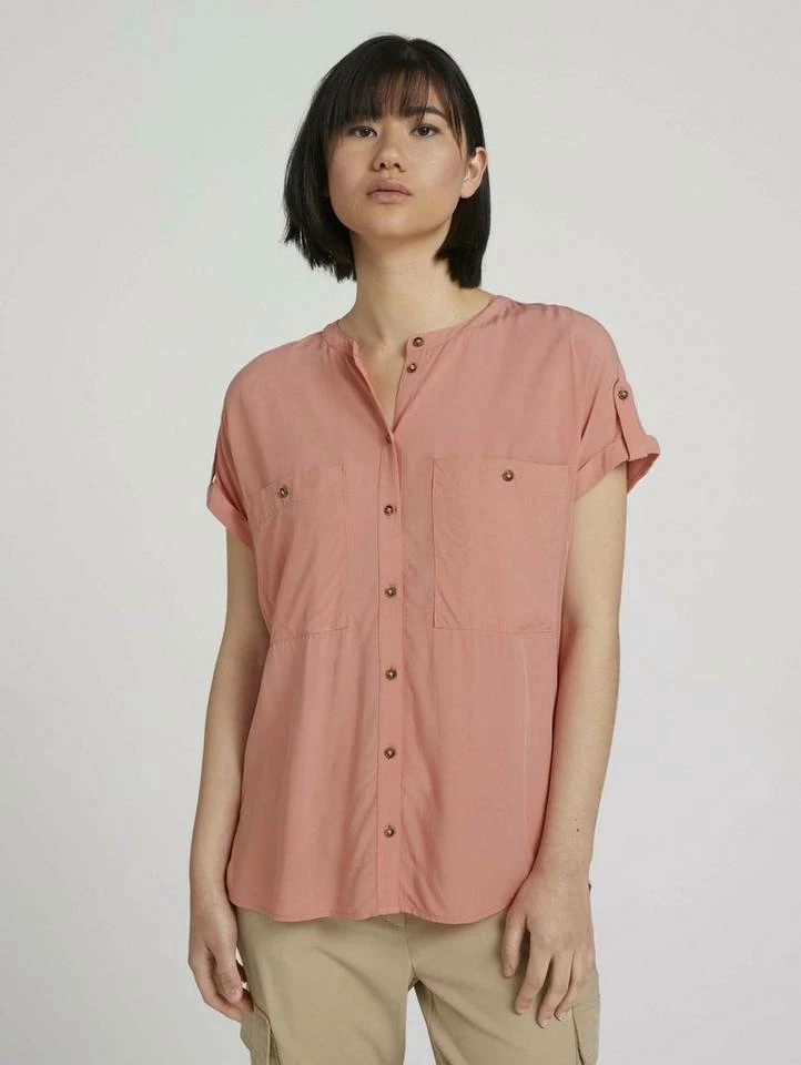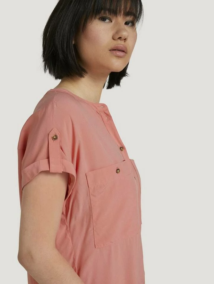 - Kurzärmlig mit Rundhalsausschnitt und Knopfleiste