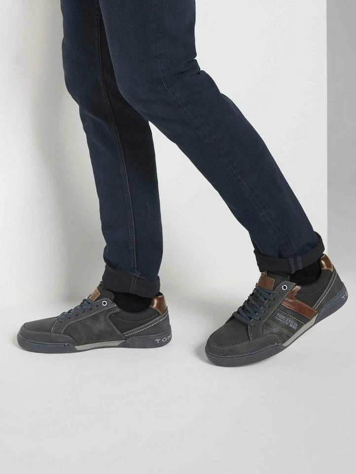 Sneaker aus Kunstleder für Männer (mit Schnürsenkeln zum Binden) aus hochwertigem Kunstleder, Schafthöhe ca. 7,5cm und Schaftbreite ca. 12cm, mit thermoplastischer Gummisohle, Absatzhöhe ca. 3cm, mit Wechselfußbett