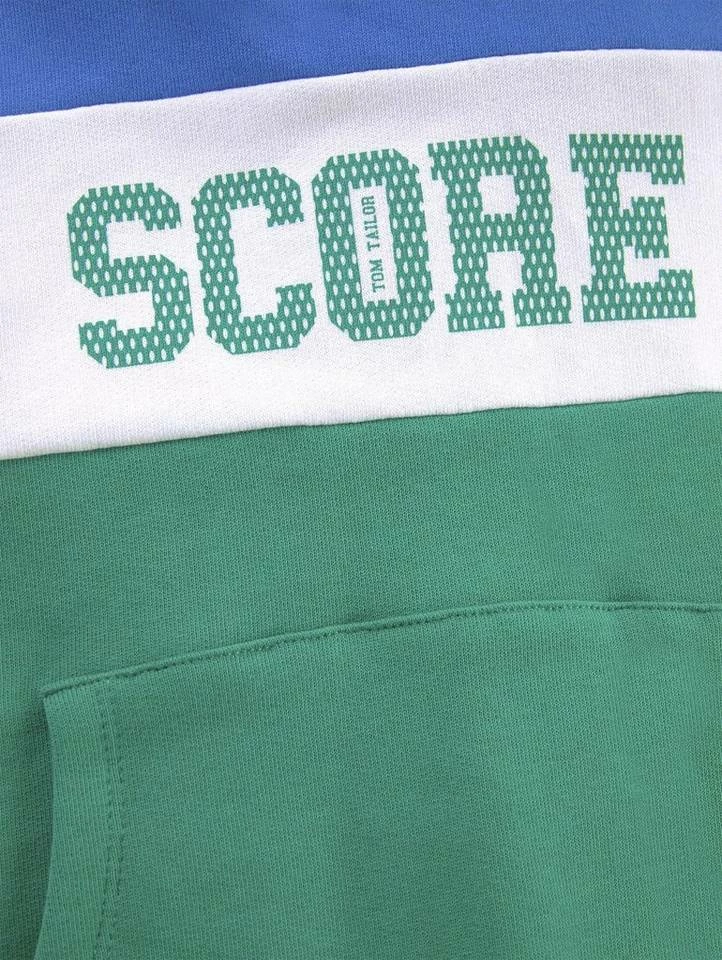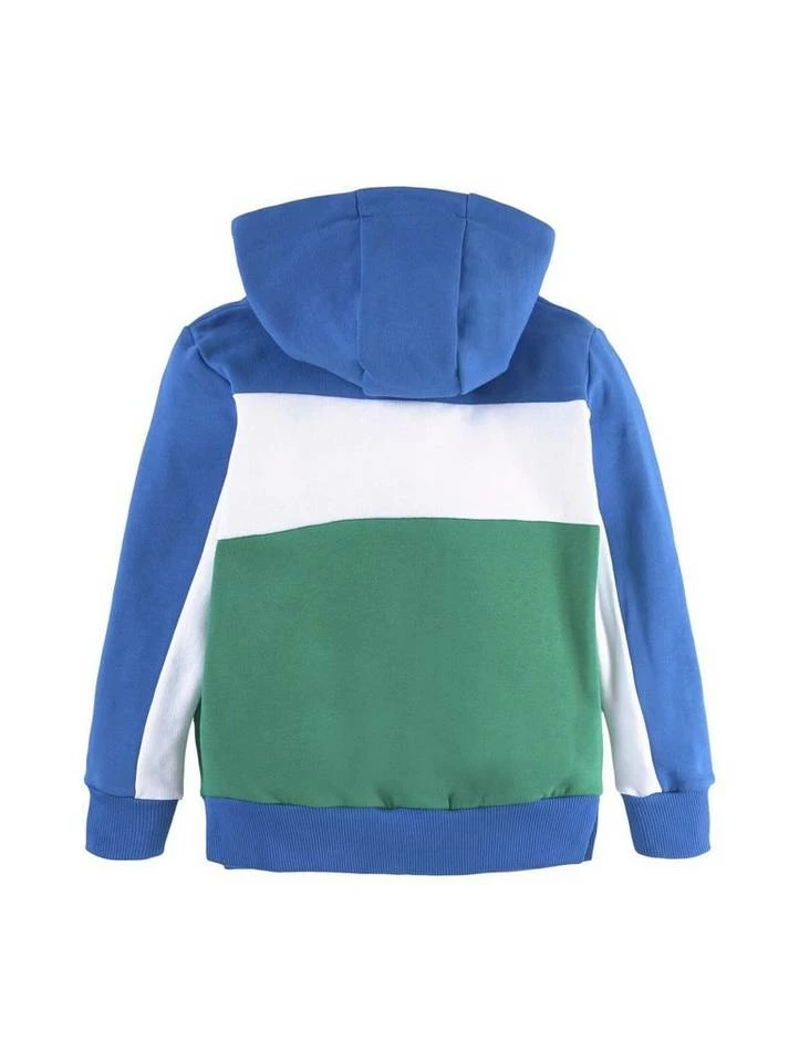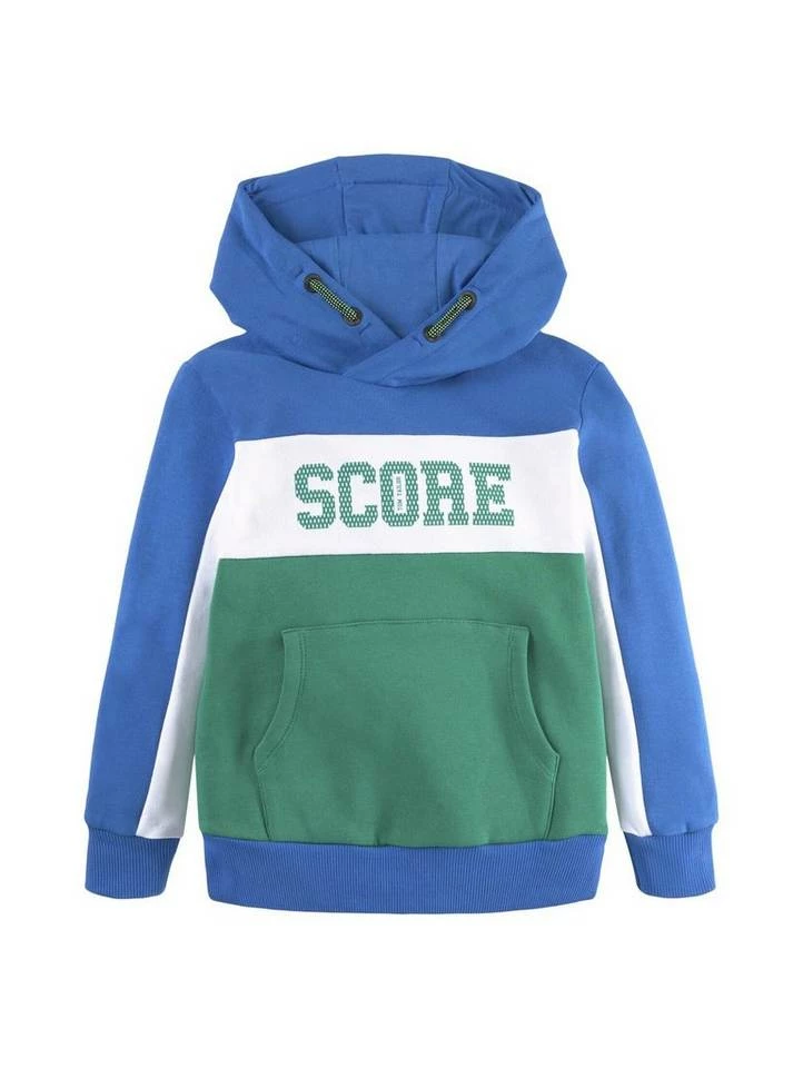 Hoodie mit Schriftprint für Jungen (langärmlig mit Kapuze) aus weichem und elastischen Sweat, mit Print auf der Frontseite, Kängurutasche auf der Frontseite, im Colour Blocking, mit abgesetzten Rippbündchen an den Saumkanten, mit Seitenschlitzen am Saum