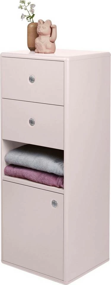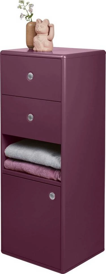Überzeugt durch stylische Optik und Funktionalität: der Unterschrank »COLOR BATH« von TOM TAILOR im modernen Look. Er steht in mehreren angesagten Trendfarben zur Auswahl, wodurch eine Abstimmung auf unterschiedliche Einrichtungen ermöglicht wird. Abgerundet wird das zeitgemäße Design durch einen dekorativen Knopfgriff der Marke. Da der Stauraumschrank nur wenig Stellfläche einnimmt, fügt er sich hervorragend in kleine Badezimmer ein. Hinter der Tür und in den praktischen Schubladen befindet sich reichlich Platz für Badutensilien. Im offenen Fach können Handtücher und Badaccessoires aufbewahrt werden. Durch die vorhandene Push-to-Open-Funktion lässt sich der Schrank grifflos öffnen. Hinsichtlich der Qualität überzeugt das Badmöbel mit der Herstellung aus hochwertigen Materialien. Ein Eyecatcher in jeder Badezimmereinrichtung: der Unterschrank »COLOR BATH« von TOM TAILOR im modernen Look.