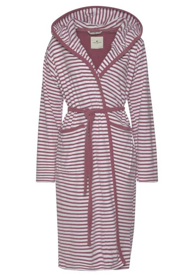 Der schöne, in Kurzform designte »Stripe« Bademantel aus dem Hause TOM TAILOR ist ein vielseitig nutzbarer Freizeit- und Urlaub Dress. Mit seinen funktionalen und seinen Komfortqualitäten sorgt er sowohl zuhause als auch unterwegs im Schwimmbad, am Strand oder in der Sauna für ein tolles Wohlfühl-Feeling. Der leichte Bademantel ist aus weichem, hautsympathischen Material gefertigt und ist sehr bequem. Dank seiner Kapuze kann man sich in diesen Bademantel richtig schön einkuscheln. Zur Ausstattung gehören noch zwei aufgesetzte Einschubtaschen sowie ein praktischer Gürtel mit stoffeigenen Gürtelschlaufen an den Seiten. Durch die Waschmaschinen- und Trocknereignung lässt er sich einfach reinigen. Der bequeme TOM TAILOR Bademantel »Stripe« bereichert mit seinen besonderen Eigenschaften den Alltag.
