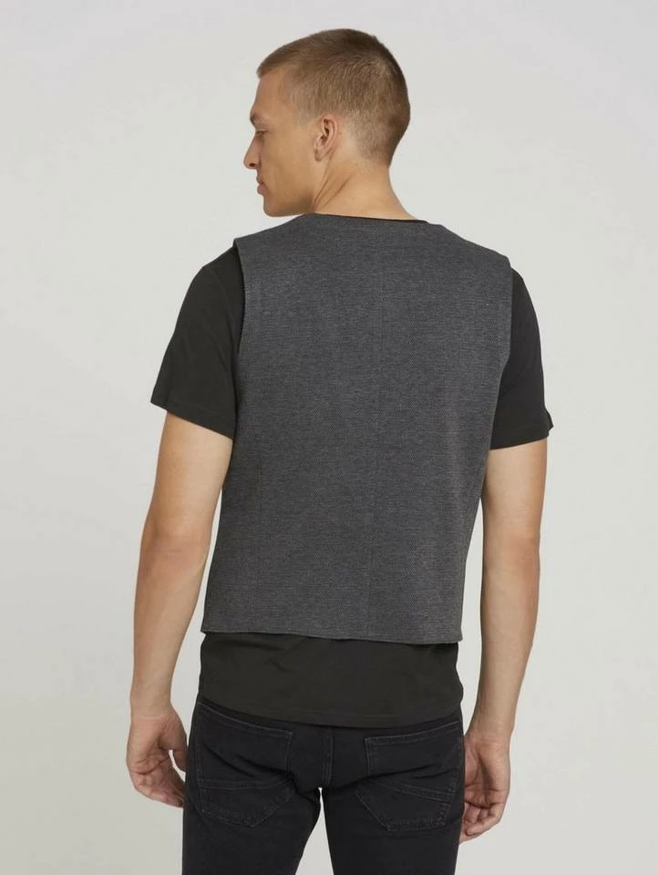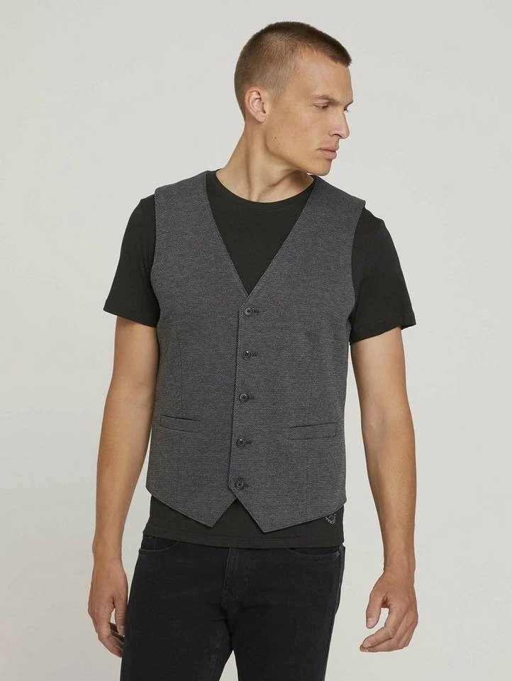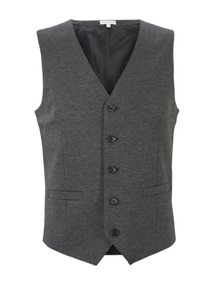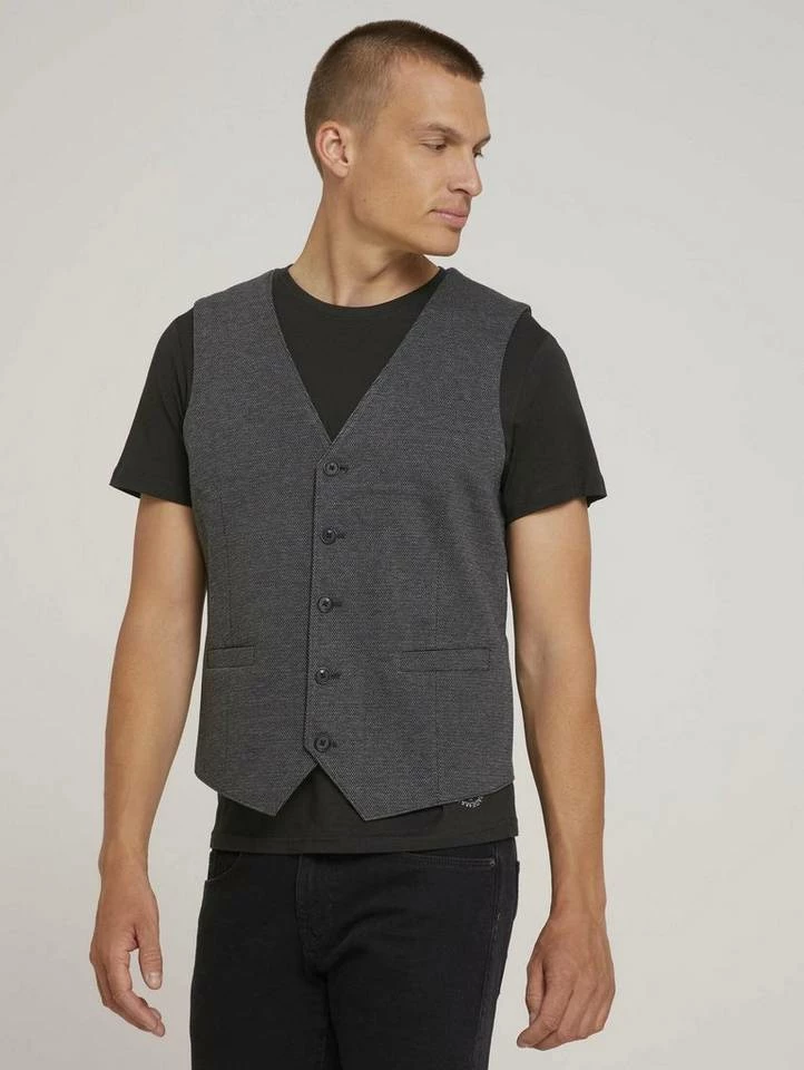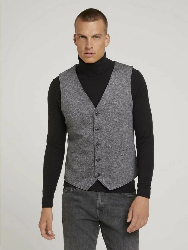 Jersey Veste für Männer (ärmellos mit V-Ausschnitt und Knopfleiste) aus pflegeleichten und weichen Fasern, strukturiert, mit Paspeltaschen auf der Front