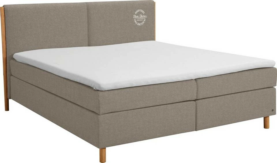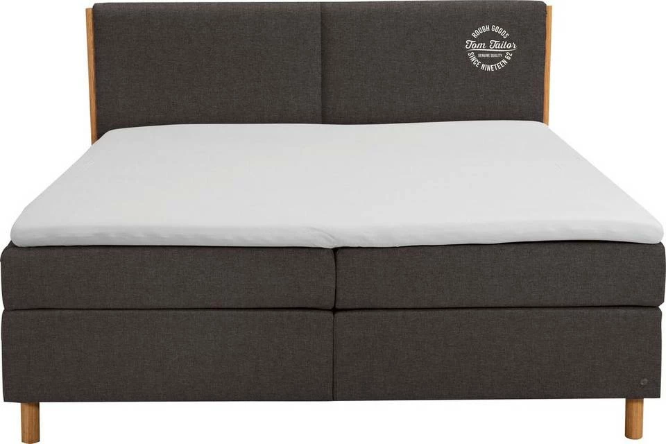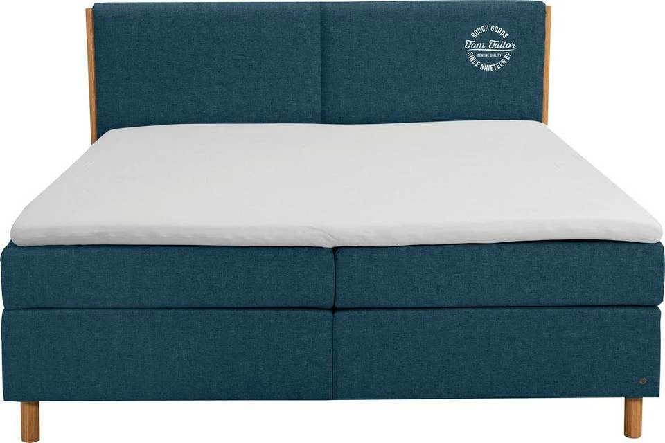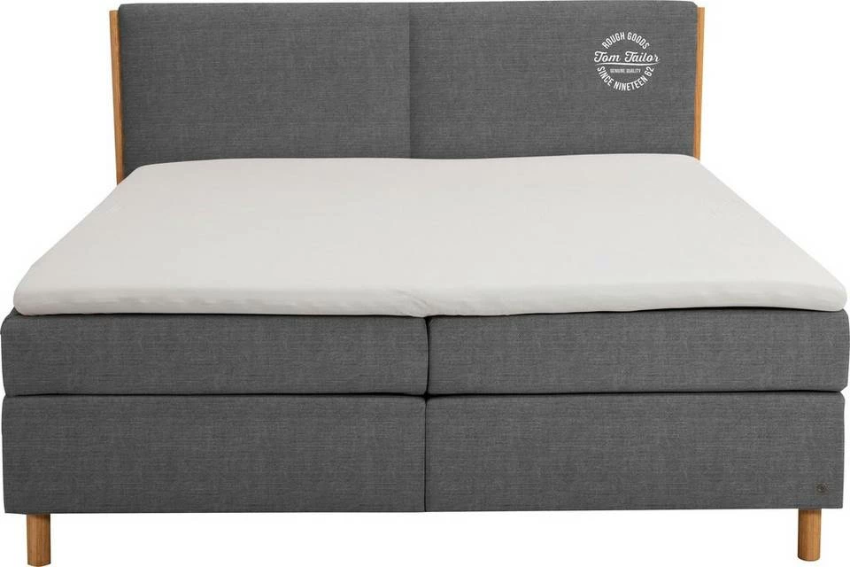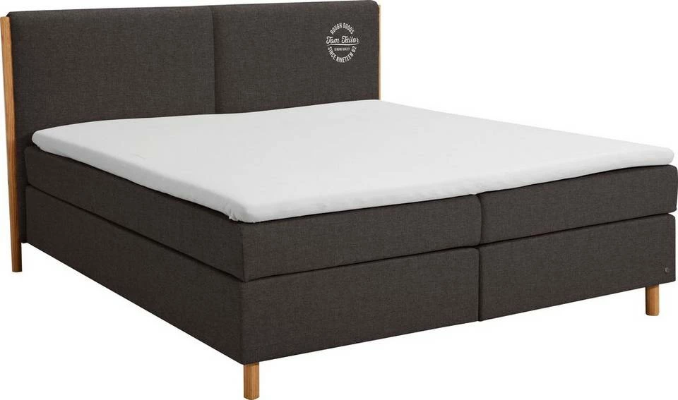 - Edles Boxspringbett mit Massivholzakzenten & TOM TAILOR Print am Kopfteil