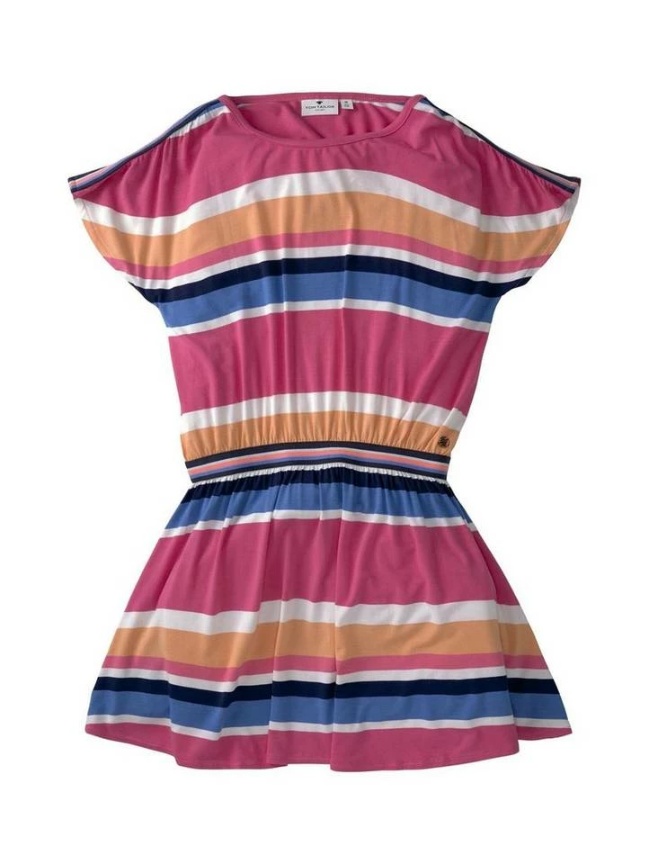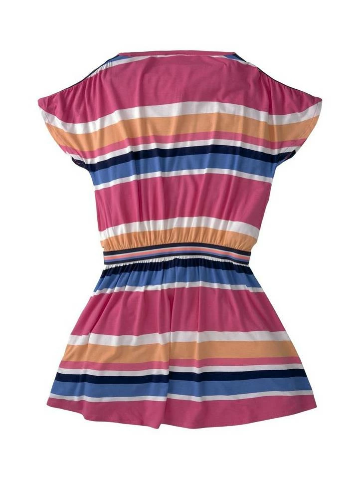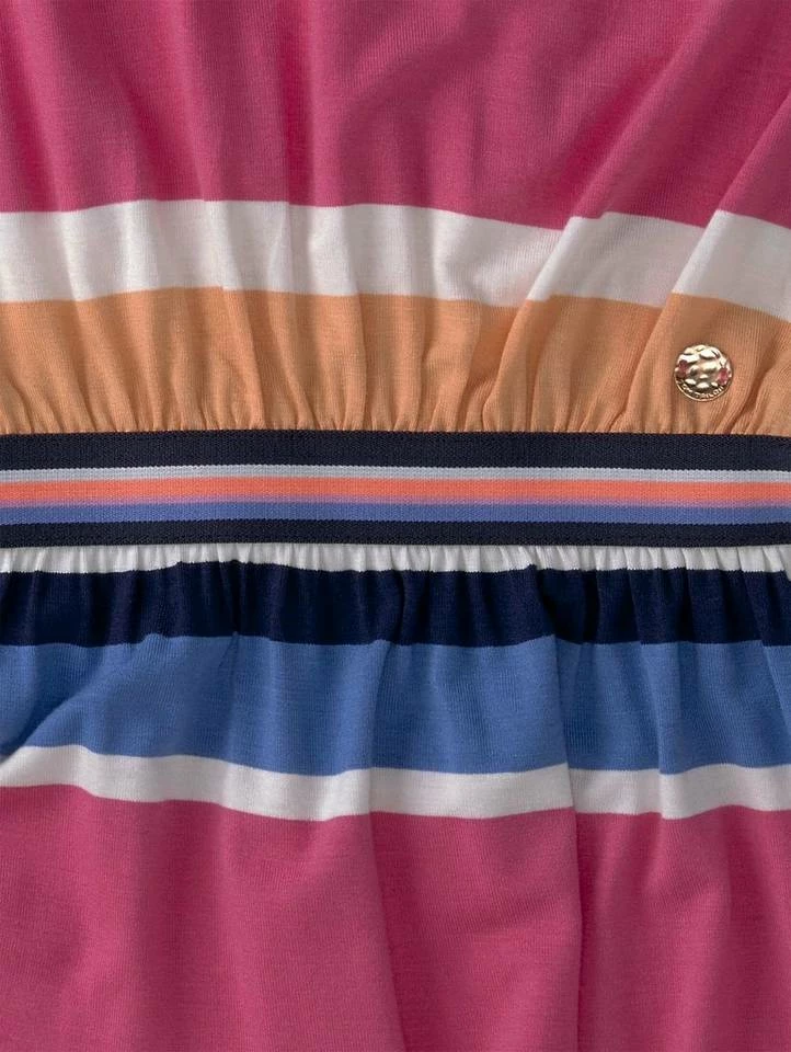 gestreiftes Kleid für Mädchen (kurzärmlig mit Rundhalsausschnitt) aus dehnbarem und bequemen Jersey , gestreift, mit Raffungen und elastischem Taillenbund