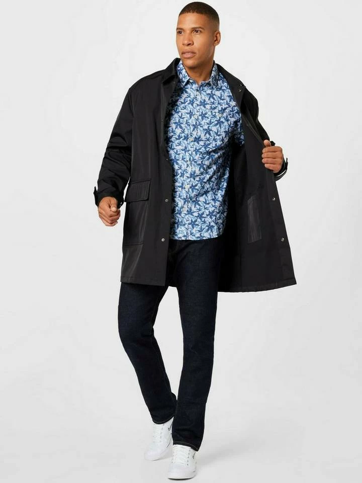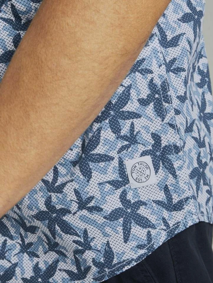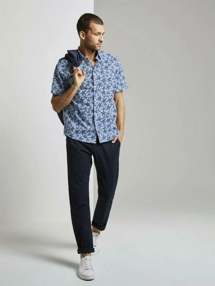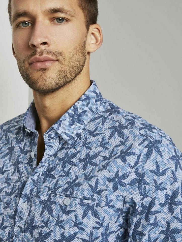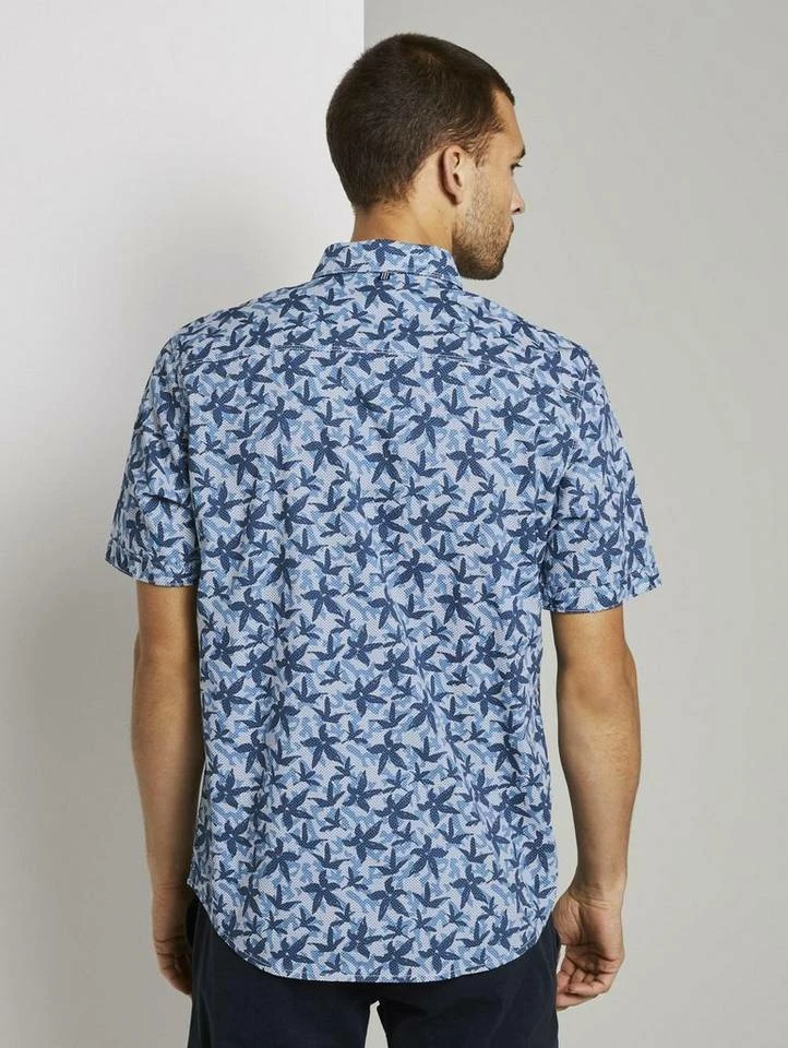 Gemustertes Hemd für Männer (kurzärmlig mit Kent-Kragen und Knopfleiste zum Schließen) aus Baumwolle mit Stretch-Anteil, ganzflächig gemustert, mit aufgesetzter Tasche auf der Brust, mit Logo-Badge vorne seitlich am Saum