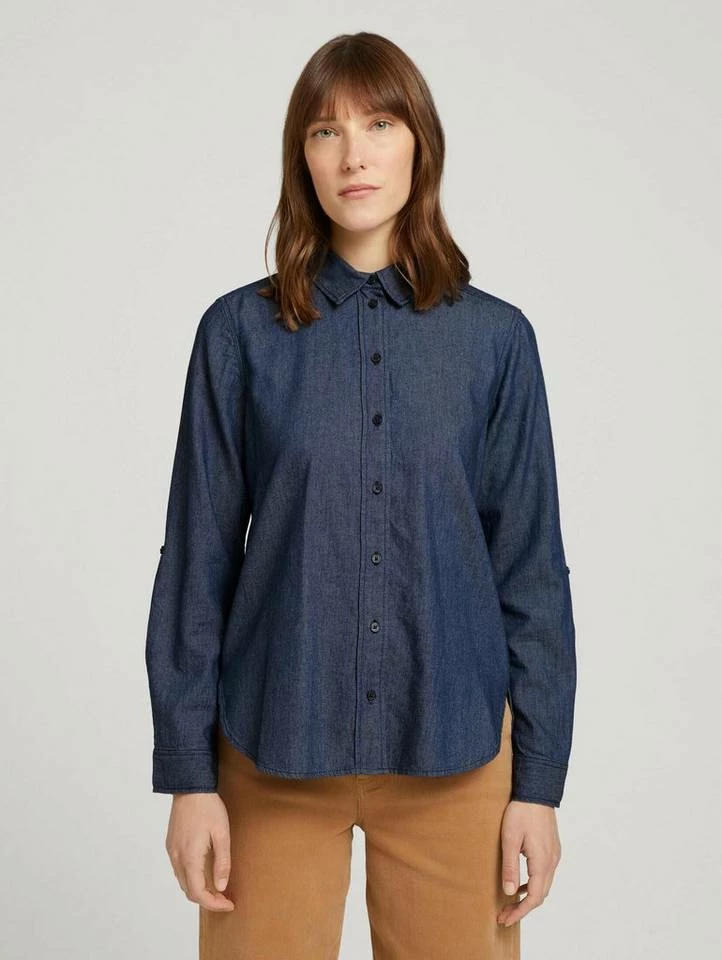Jeans Hemnd für Frauen (langärmlig mit Umlegekragen und Knopfleiste) mit weicher und nachhaltiger Baumwolle, leichte Waschung