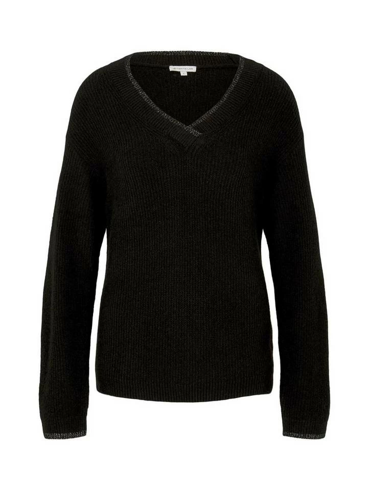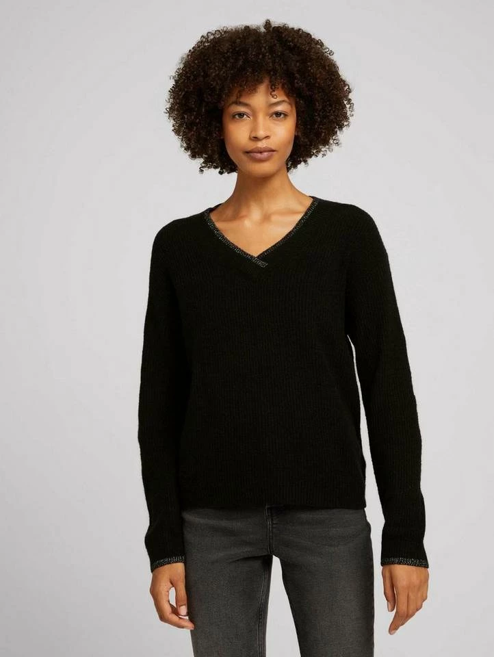 Lockerer Pullover mit V-Ausschnitt für Frauen (langärmlig mit V-Ausschnitt) mit weichem Wollanteil, grober Ripp