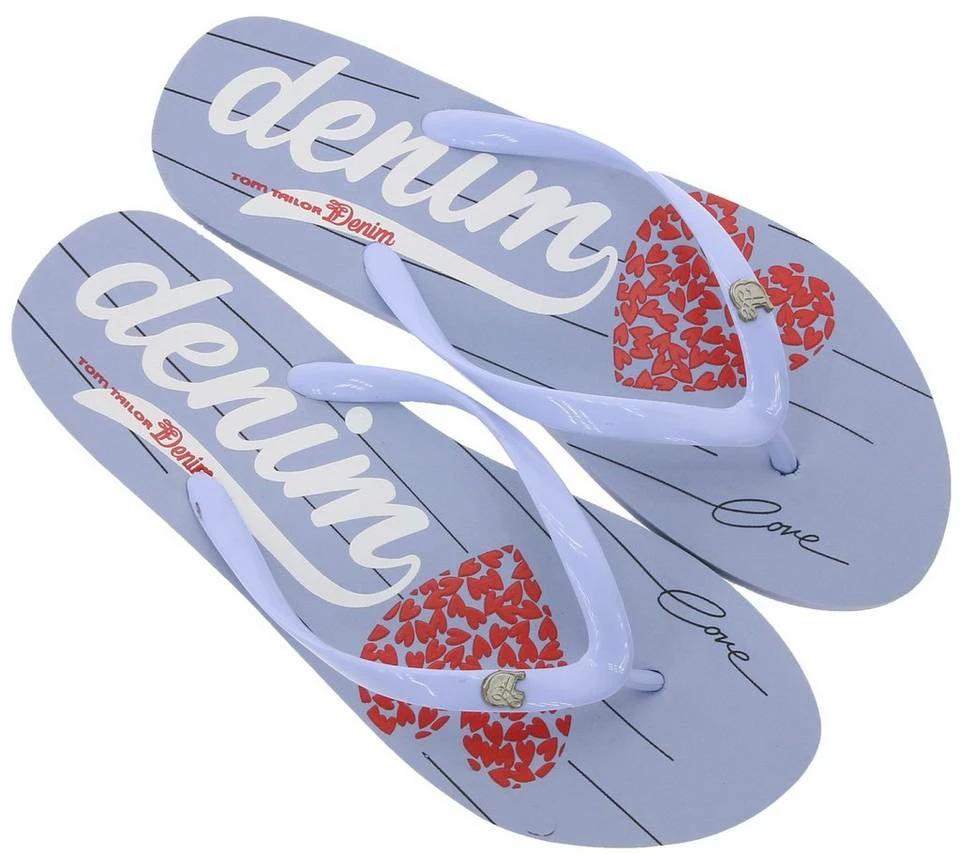 TOM TAILOR DENIM Zehentrenner modische Damen Schlappen mit Denim Logo Blau