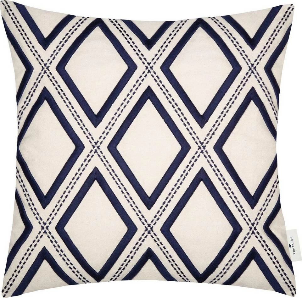 Trendiges Wohnaccessoire mit coolem 3D-Effekt: Mit der Kissenhülle „3D Rhombus“ von TOM TAILOR verbannen Sie die Langeweile von Ihrem Sofa! Die Zierkissenhülle erhält ihren außergewöhnlichen Look durch das gestickte, blaue Rhombendessin in einer außergewöhnlichen und extravaganten 3D Optik auf naturfarbenen Grund. Die Rückseite beruht durch den hochwertigen Material-Mix aus 65% Polyester und 35% Baumwolle auf einer glatten Oberfläche in unifarben. Mit diesem Kissen schaffst du dir deine ganz persönliche, individuelle und abwechslungsreiche Wohlfühl-Atmosphäre. „3D Rhombus“ ist in der Größe 45 x 45 cm erhältlich.
