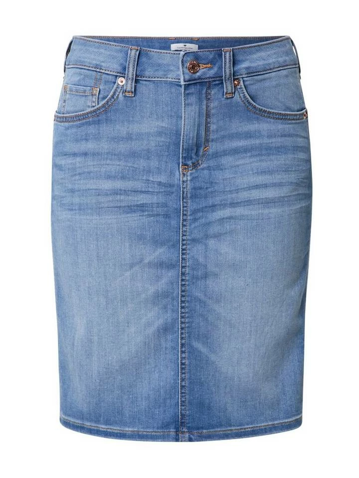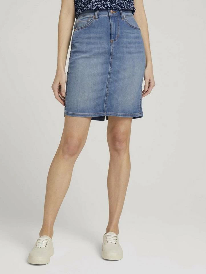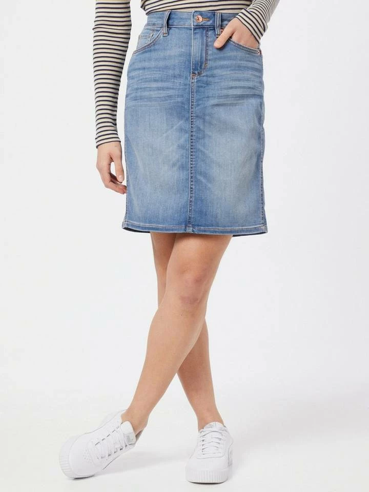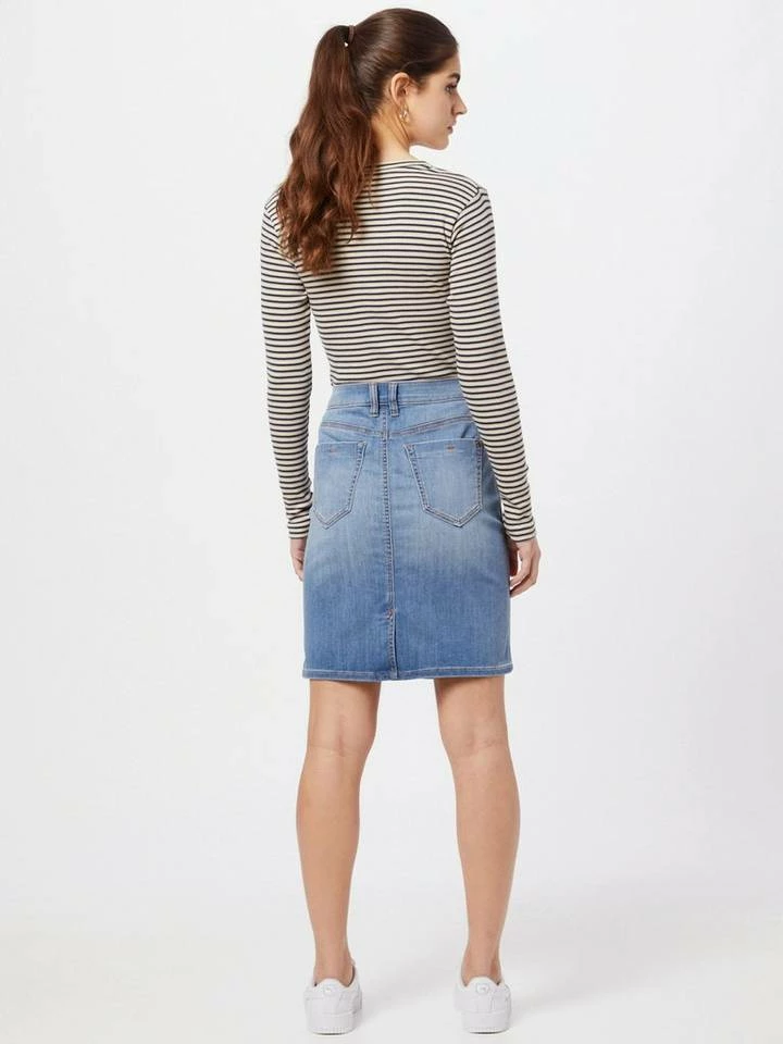 Jeansrock in heller Waschung für Frauen (mit Reißverschluss und Knopf) aus bequemen und dehnbarem Denim, leichte Waschung, enthält nachhaltige Baumwolle, Five-Pocket-Style, gestreift, mit Gehschlitz hinten