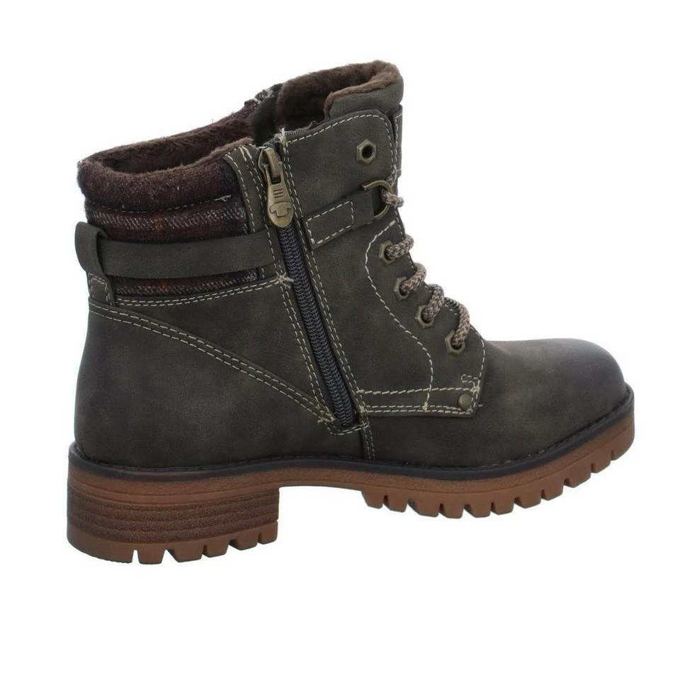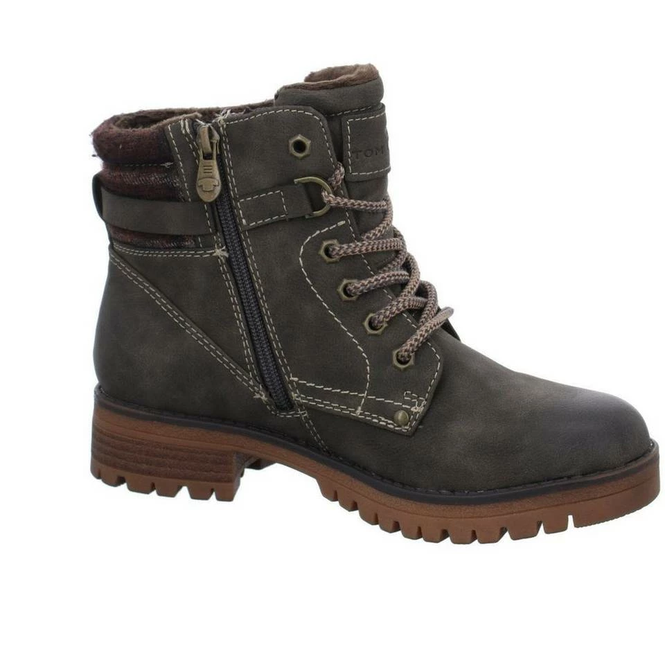 Die robusten Boots von Tom Tailor sorgen in diesem Winter für warme Füße und einen modischen Auftritt. Dank des wasserabweisenden Tex-Obermaterials, bleiben die Füße auch im nasskalten Herbstwetter trocken. Mit einer Schnürung und einem Reißverschluss auf der Innenseite versehen, ist der derbe Look der Boots aus khakifarbenem Kunstleder vervollständigt. Kombinierbar zu so gut wie allen legeren Alltagslooks, gibt dieser Stiefel einen perfekten Alltagsbegleiter ab.