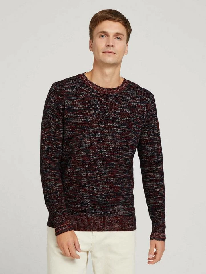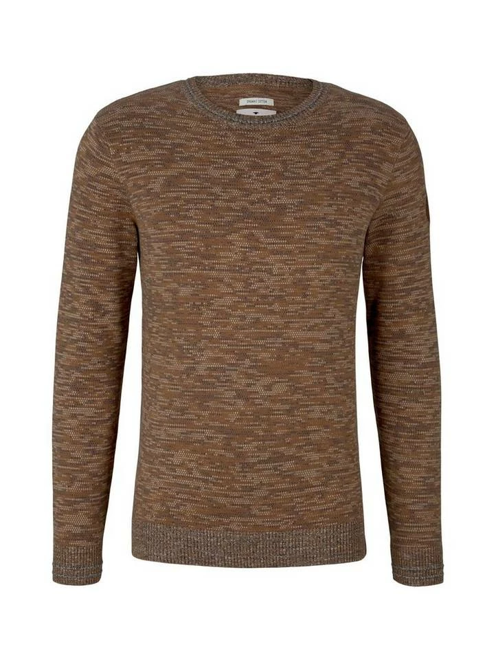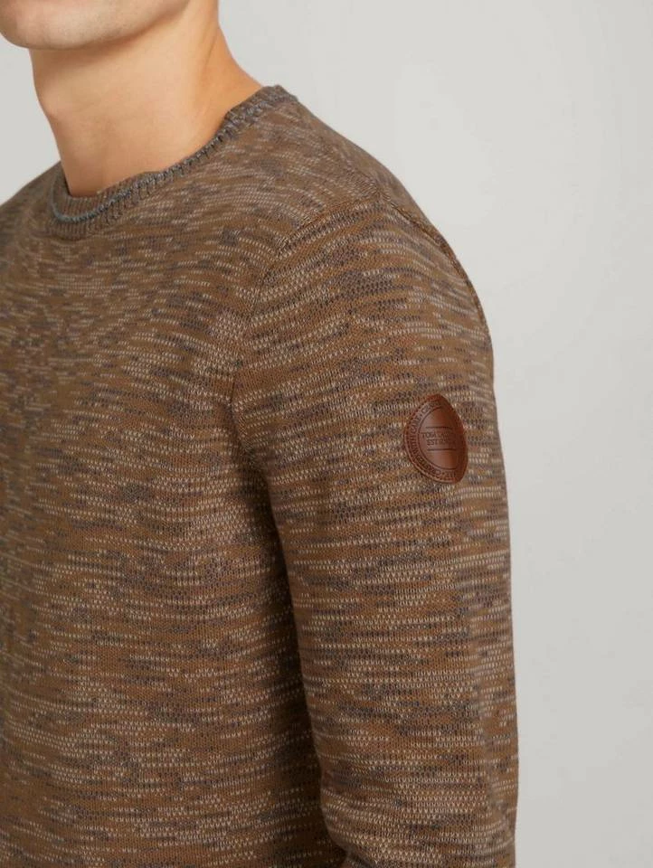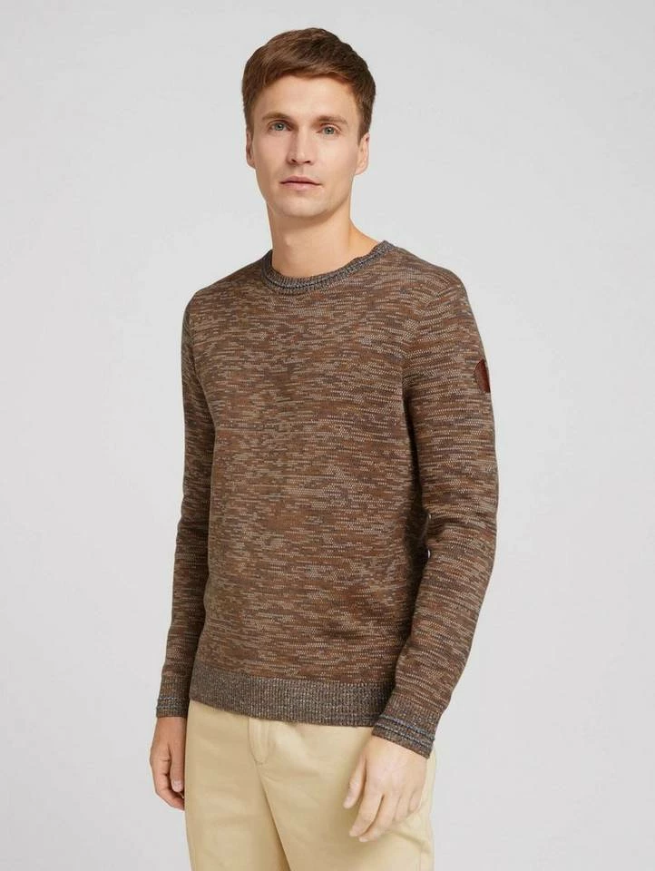 Pullover aus Bio-Baumwolle für Männer (langärmlig mit Rundhalsausschnitt) aus atmungsaktiver und weicher Bio-Baumwolle, in Melange-Optik, mit Logo-Badge am Ärmel, mit Rippbündchen