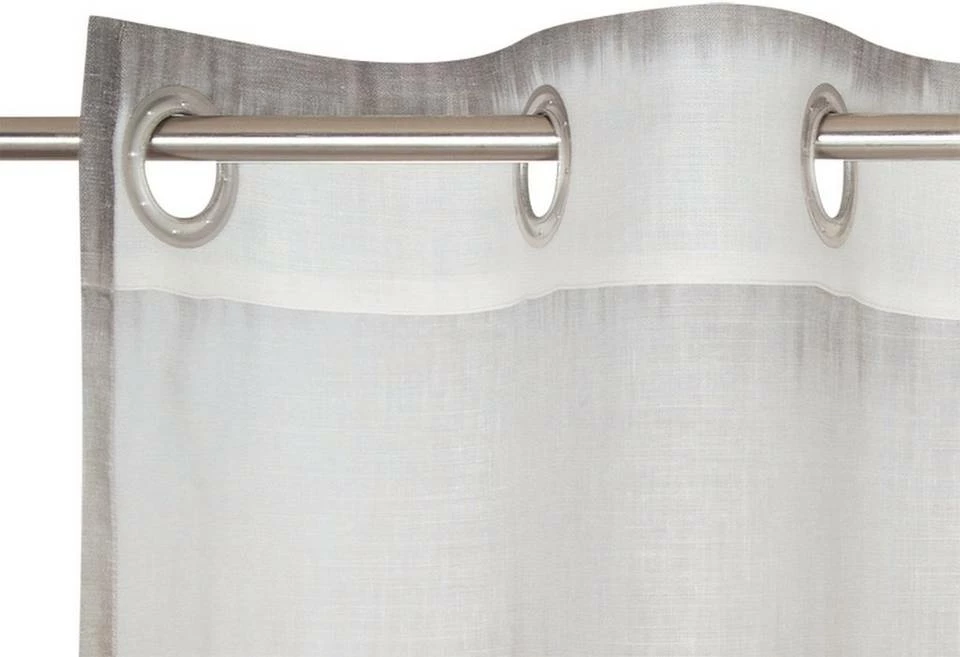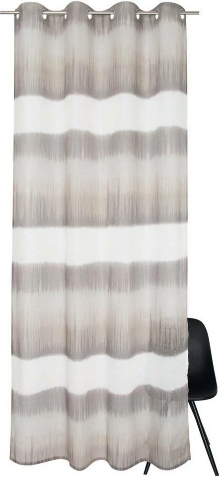 Halbtransparenter Ösenvorhang, gewebt, Blockstreifen im Natur-Batiklook