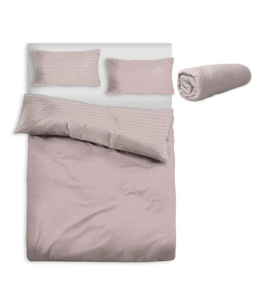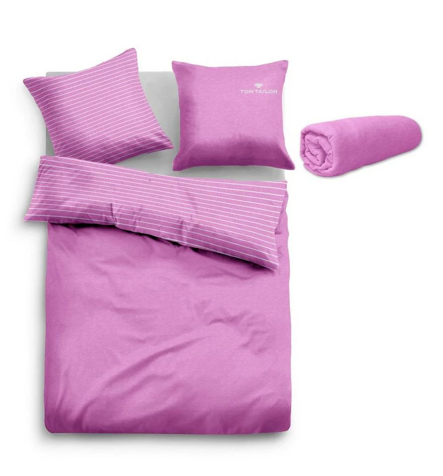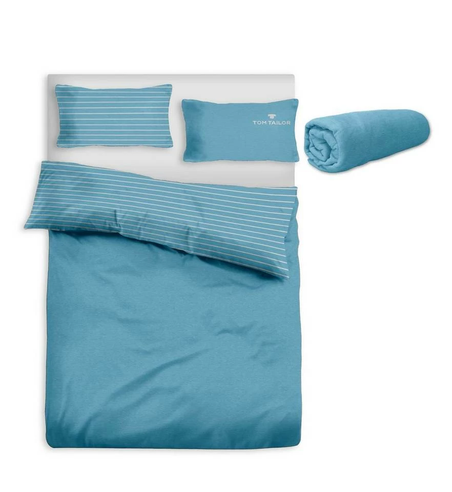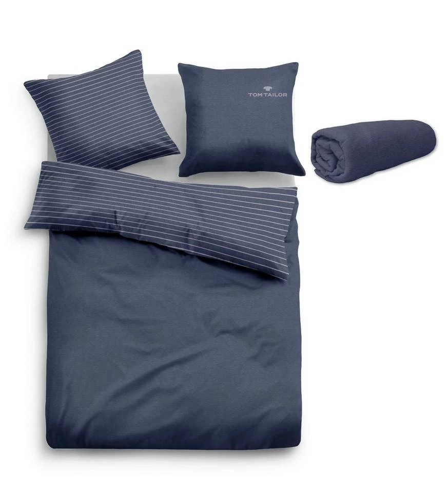 Die wunderschöne, schlichte Bettwäsche "Ava" der Marke Tom Tailor verleiht mit ihrem schönen Melangeeffekt eine zeitlose moderne Note. Der feine, weiche Stoff der Bettwäsche ist aus 100% Baumwolle hergestellt, sehr hautfreundlich und pflegeleicht. Kissen- und Bettbezug sind mit einem Reißverschluss ausgestattet, bis 60°C maschinenwaschbar und trocknergeeignet. Die gratis Zugabe Spannbettlaken ist aus 50% Baumwolle und 50% Polyester, geeignet für Matratzen in 90-100 x 190-200 cm Größe und mit einer Steghöhe von 22 cm. Die tollen Eigenschaften kommen auch hier zum Tragen. Weitere Spannbettlaken, auch in größeren Größen, sind separat bestellbar unter dem Namen "Ava".