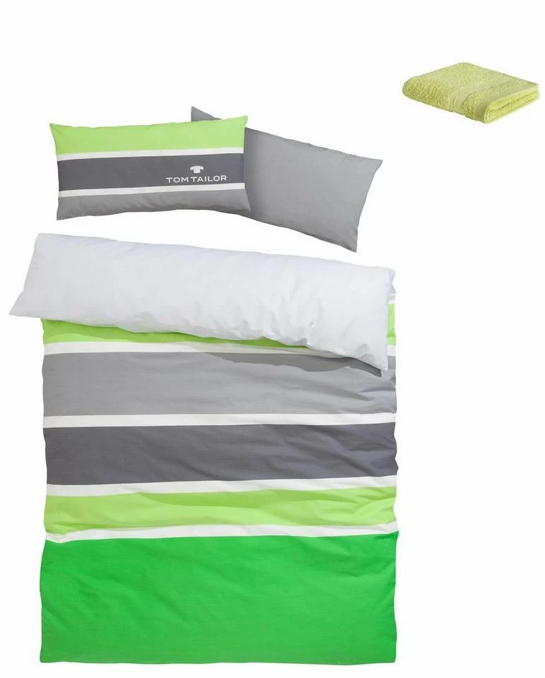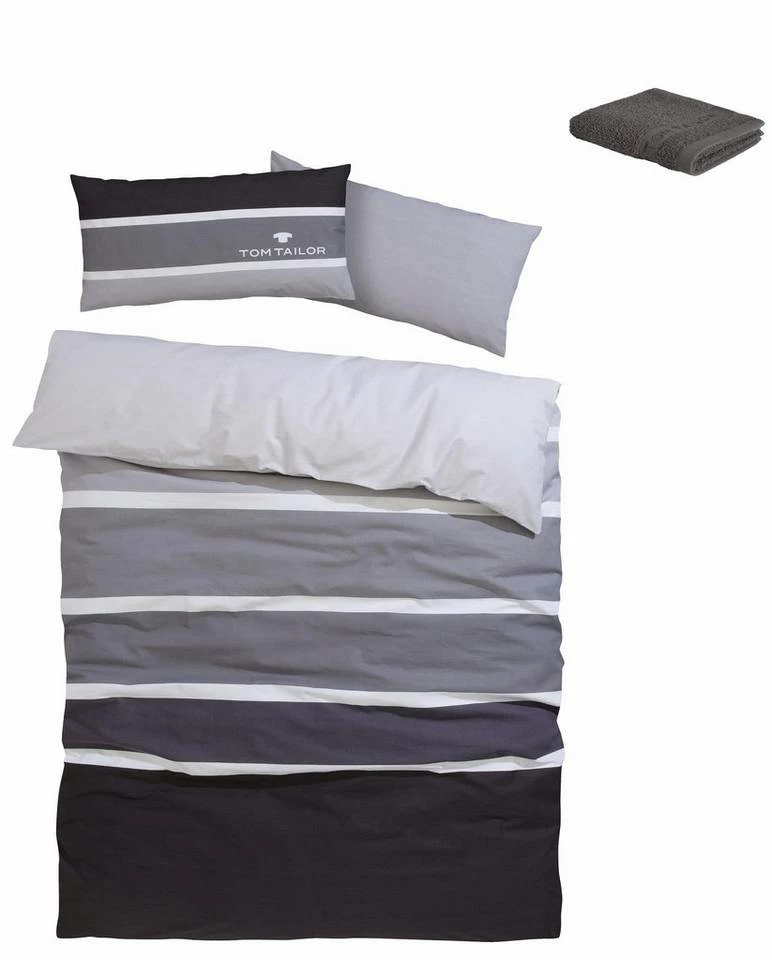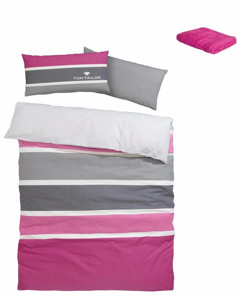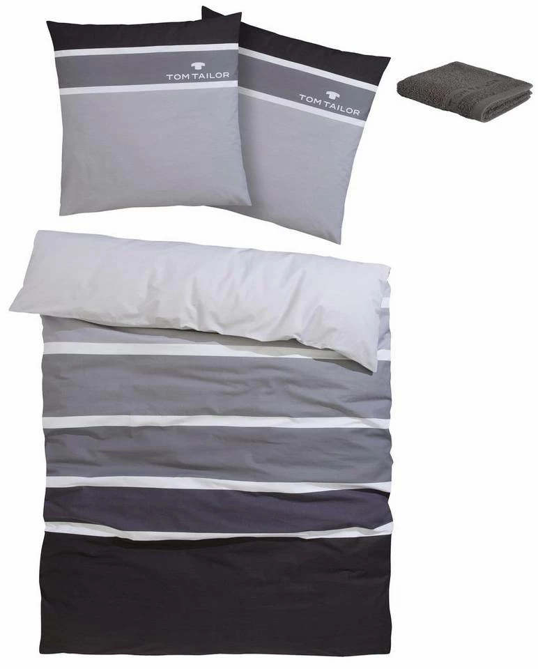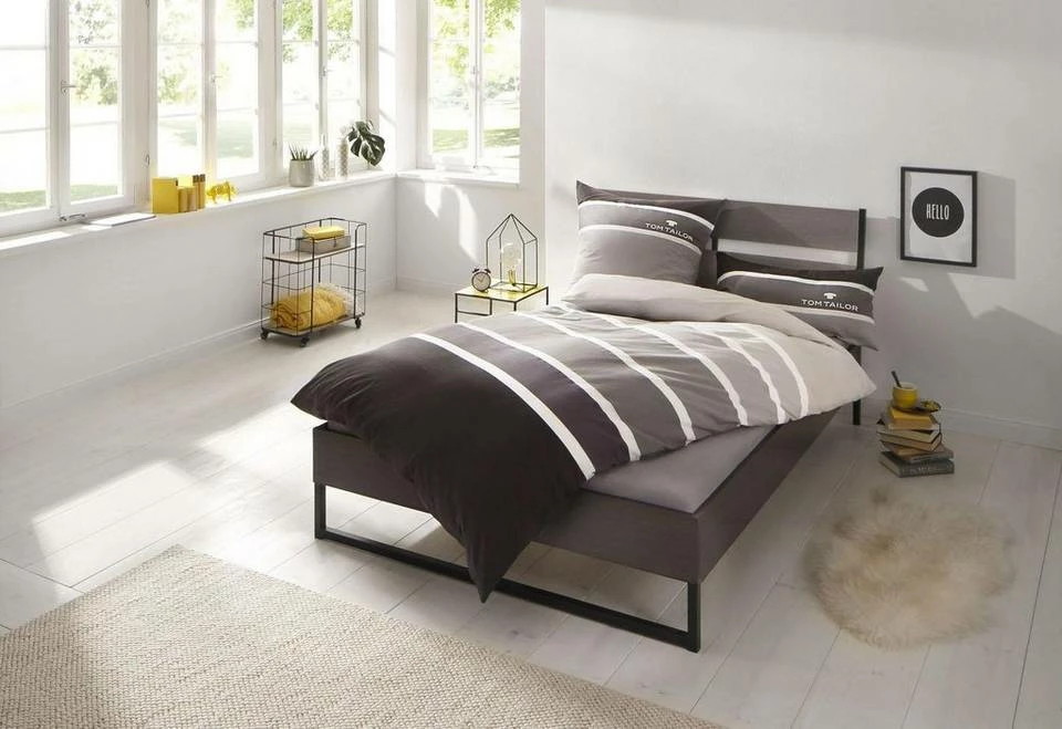 Die moderne Bettwäsche »Felix« von Tom Tailor sorgt für ein frisches Ambiente im Schlafbereich. Sie präsentiert sich im sportiven Streifen-Design Farbtönen und ist zusätzlich mit einem Logo-Druck versehen. Ausgestattet mit praktischem Reißverschluss, lassen sich Kissen- und Bettbezug im Handumdrehen ab- und beziehen. Das verwendete Material begeistert mit einer hochwertigen Qualität und ist sowohl pflegeleicht als auch trocknergeeignet. Zudem fühlen sich die Bezüge weich an, sodass sie gemütliche Nächte ermöglichen. Schafft ein behagliches Ambiente: die moderne Bettwäsche »Felix« von Tom Tailor.