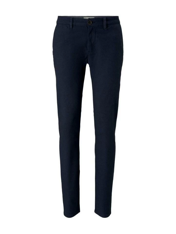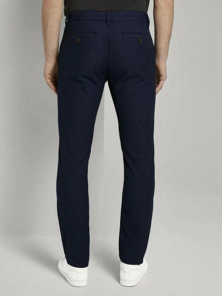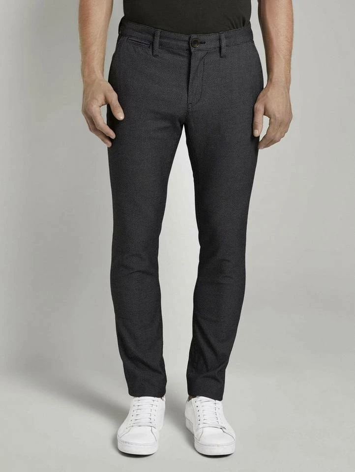 Gemusterte Travis Slim Chinohose mit Struktur für Männer (mit Reißverschluss und Knopf zum Schließen) mit weicher und nachhaltiger Baumwolle, ganzflächig gemustert, mit zwei Eingrifftaschen vorne und zwei geknöpften Taschen hinten, mit Gürtelschlaufen, mit Logo-Badge vorne an der Tasche