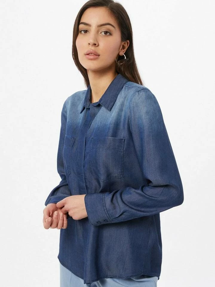 Hemdbluse aus Lyocell-Denim für Frauen (langärmlig mit Kentkragen und verdeckter Knopfleiste) aus weichem und kühlen Lyocell, leichte Waschung, mit aufgesetzten Brusttaschen