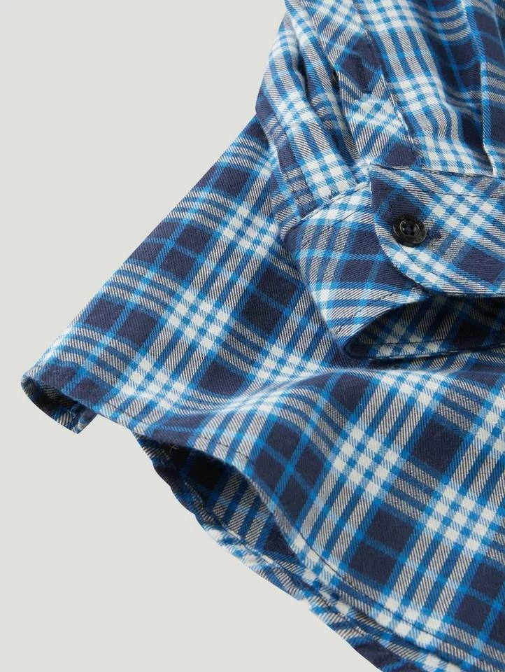 karriertes Hemd für Jungen (langärmlig mit Kentkragen und Knopfleiste) mit aufgesetzten Brusttaschen auf der Front, karriert