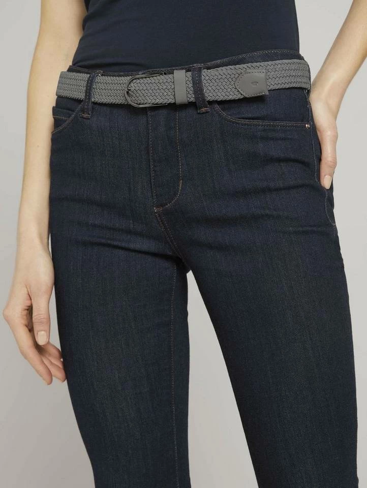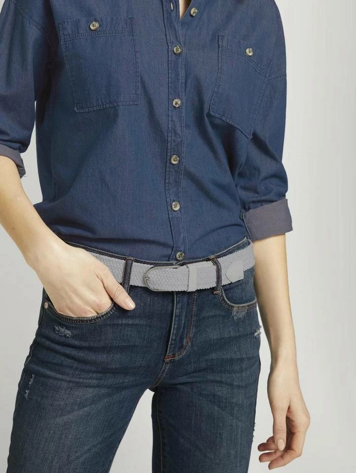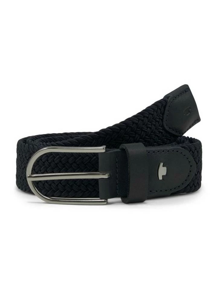 Elastischer Bandgürtel für Frauen (mit halbrunder Eindornschließe) aus elastischem Textil, Gürtelschnalle aus Metall, mit eingelassenem Metall-Logo im Leder, Textiles Stretchband