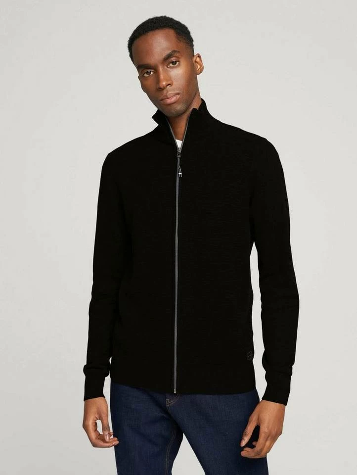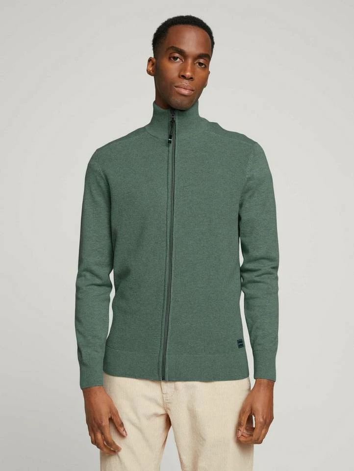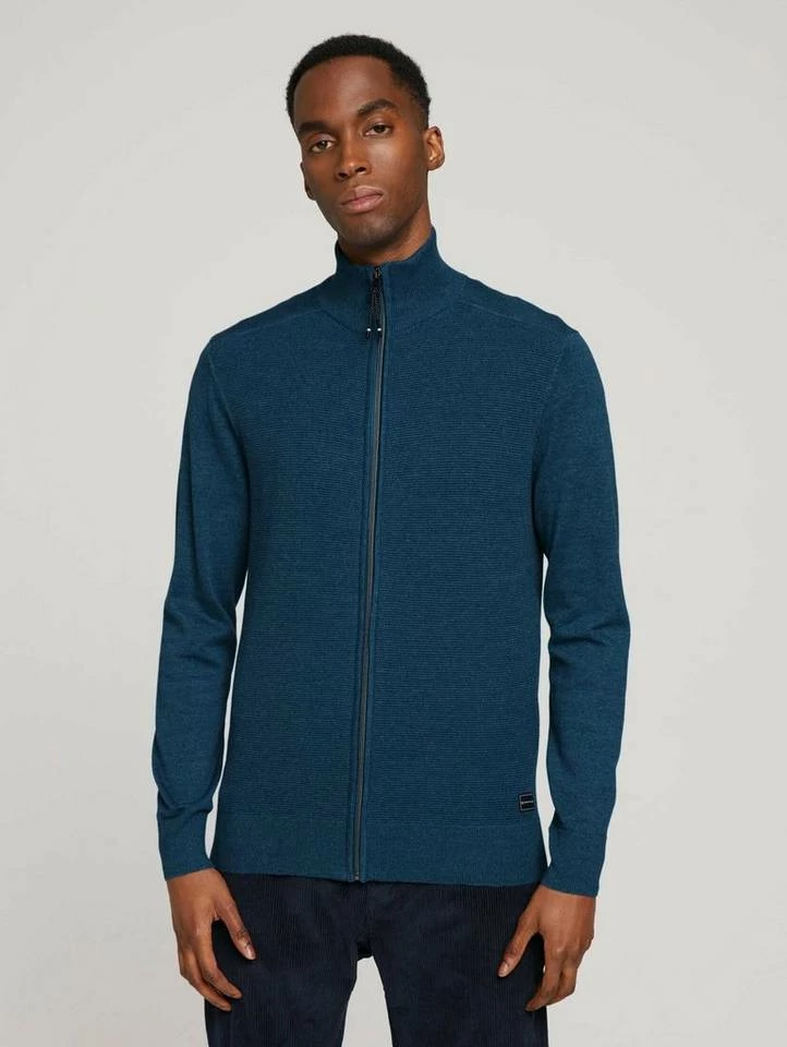 Strukturierte Jacke für Männer (langärmlig mit Stehkragen und Reißverschluss) aus atmungsaktiver und weicher Baumwolle, in Mélange-Optik, in Melange Optik, mit Rippbündchen an den Saumkanten, mit Logobadge am Saum, mit Logo Stickerei am Saum