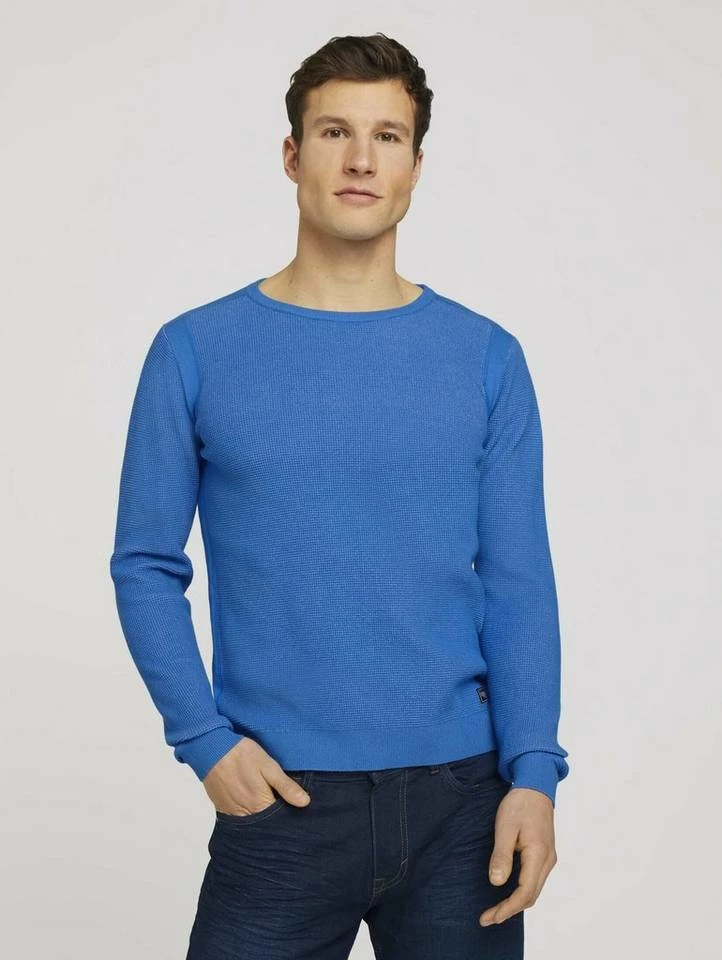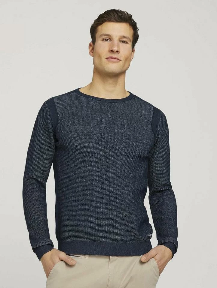 Pullover mit Rippbündchen für Männer (langärmlig mit Rundhalsausschnitt) aus weicher und atmungsaktiver Baumwolle, enthält nachhaltige Baumwolle, in Teil-Melange Optik, mit Rippbündchen