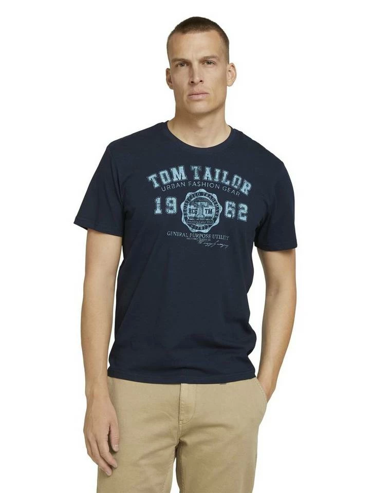 T-Shirt mit Print im Doppelpack für Männer (kurzärmlig mit Rundhalsausschnitt) aus dehnbarem und weichen Baumwolljersey, im 2er Pack: zwei T-Shirts in zwei verschiedenen Farben, mit Logo Print auf der Brust