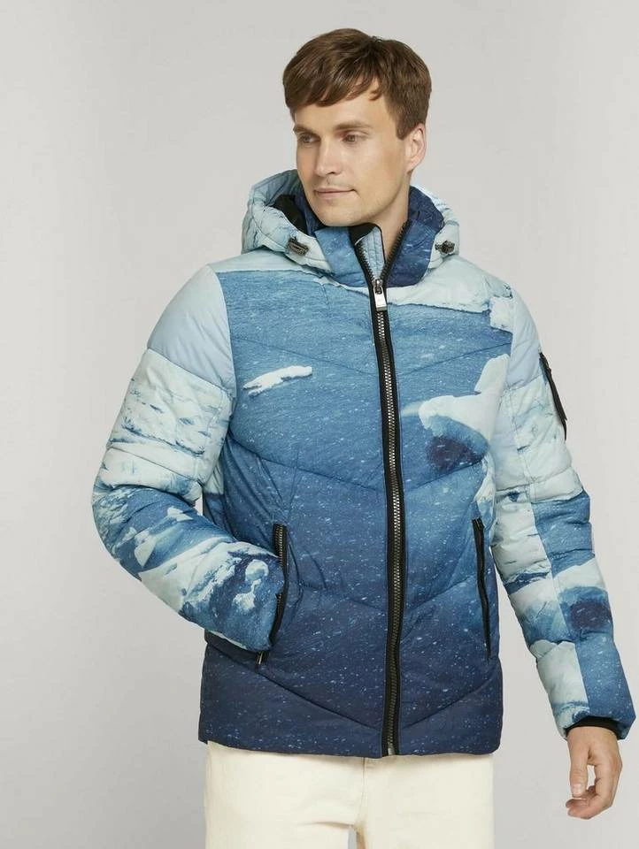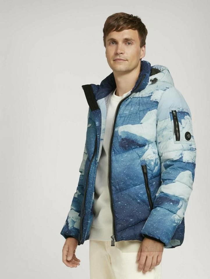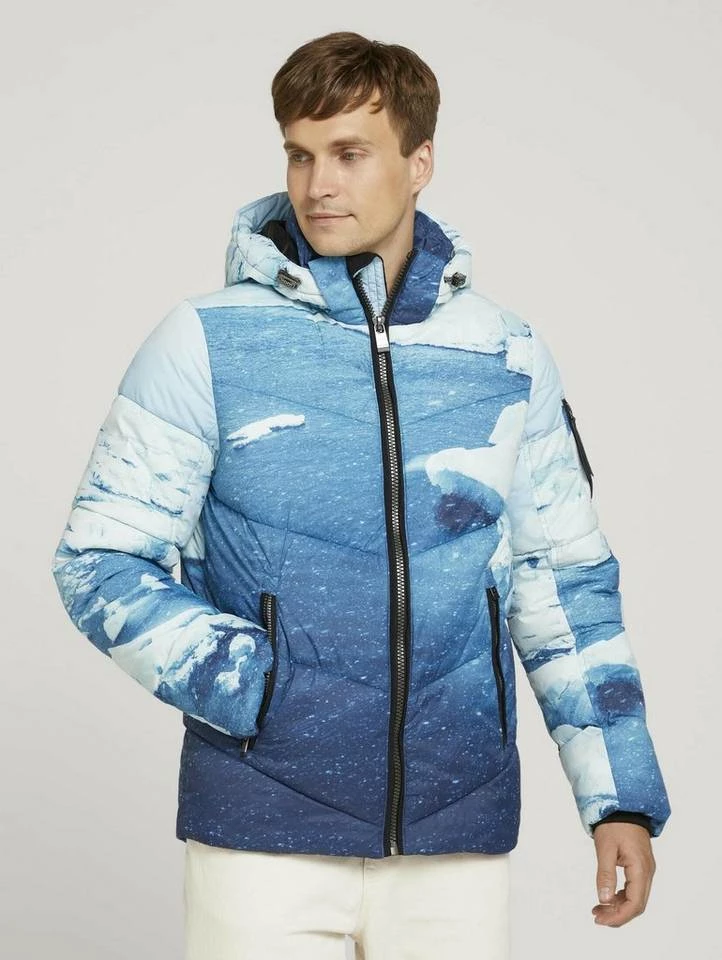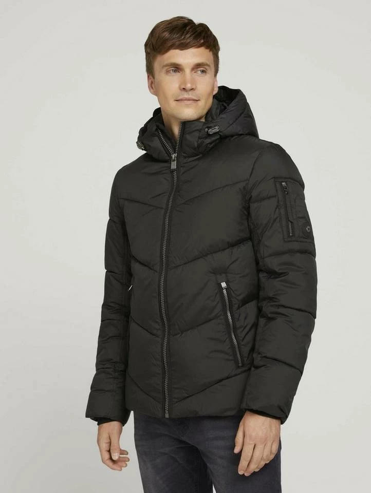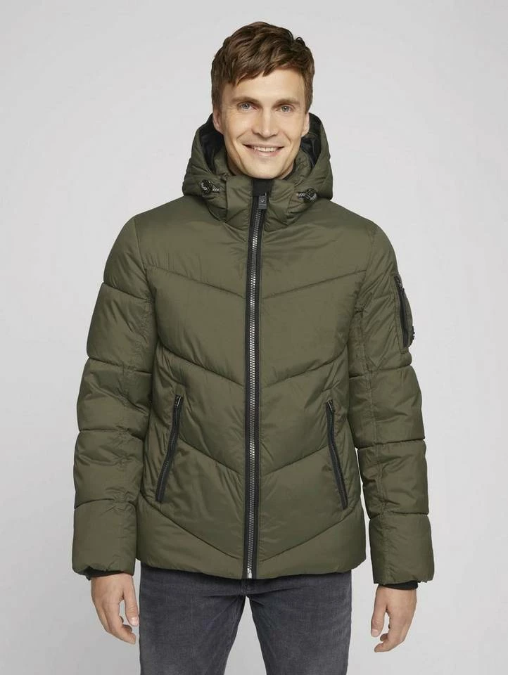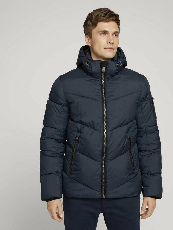 gesteppte Pufferjacke für Männer (langärmlig mit Stehkragen und Reißverschluss) aus pflegeleichten und weichen Fasern, mit abnehmbarer Kapuze, gesteppt, mit seitlichen Reißverschlusstaschen