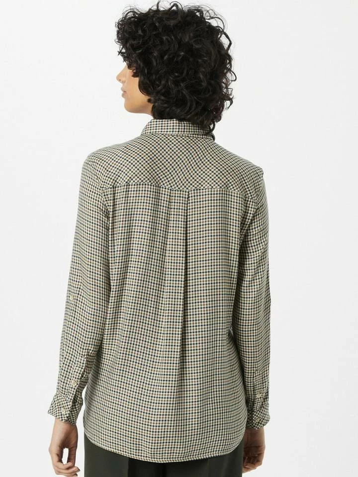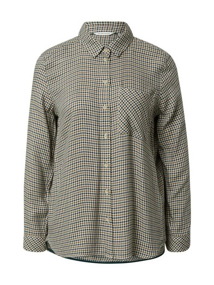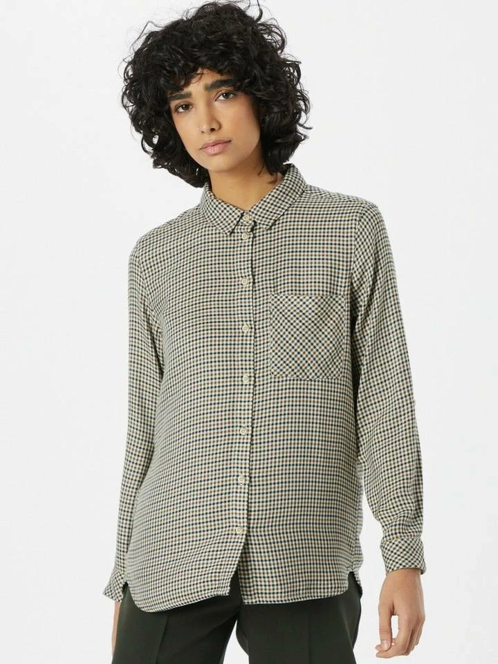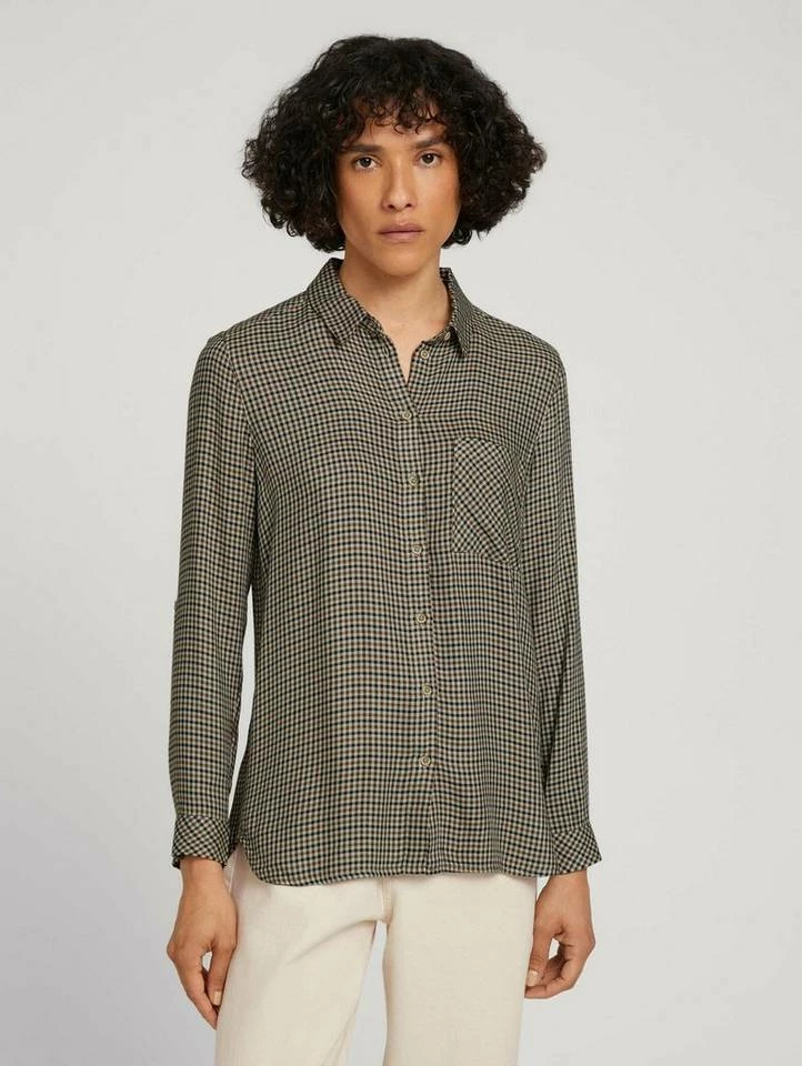 Kariertes Hemd mit Knopfleiste für Frauen (langärmlig mit Umlegekragen und Knopfleiste) aus fließender Viskose, kariert, mit einseitiger Brusttasche