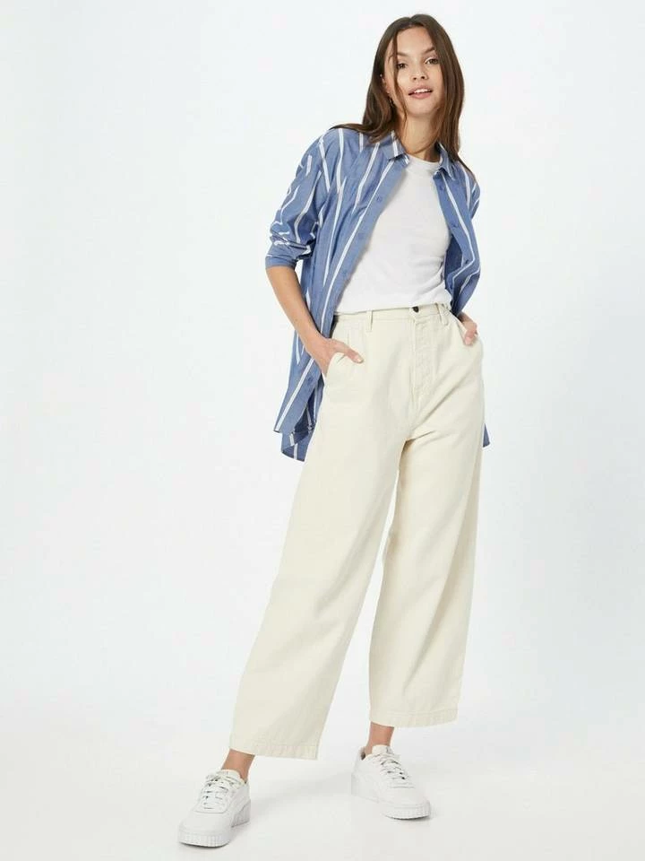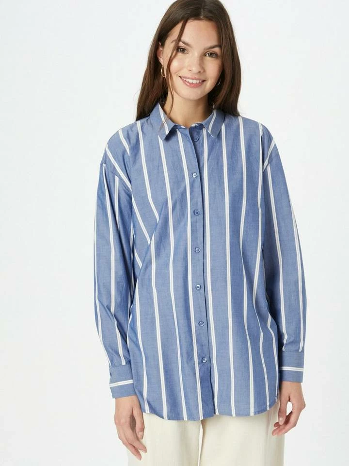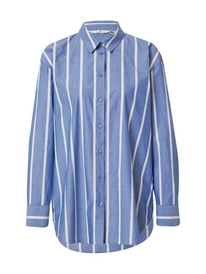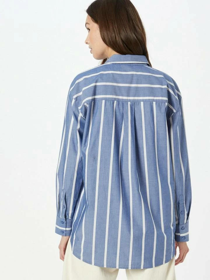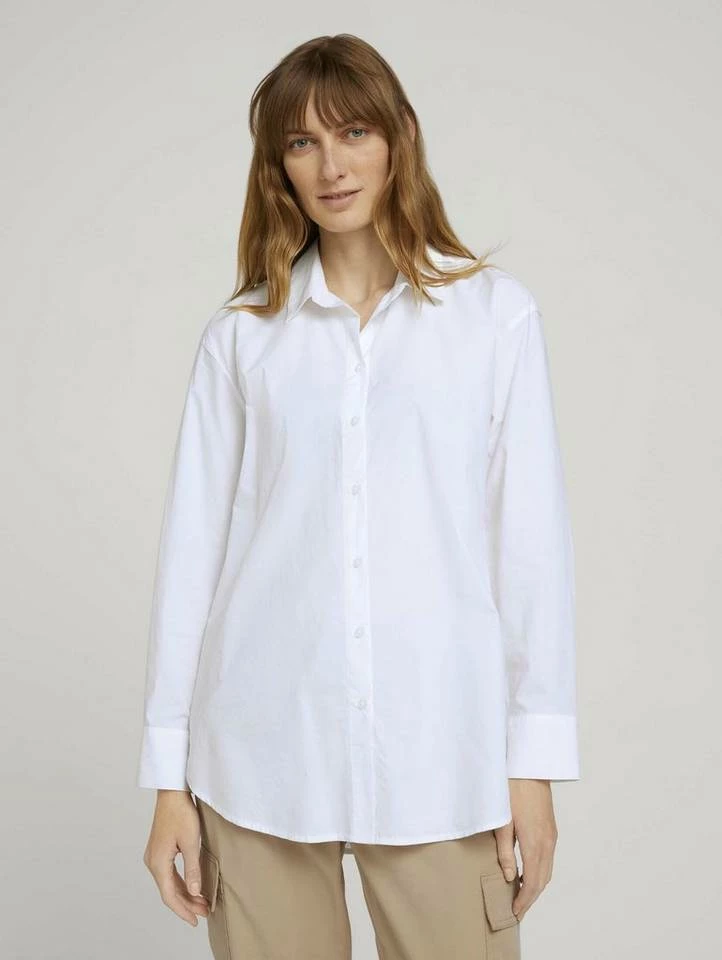 Popeline Bluse für Frauen (langärmlig mit Kentkragen und Knopfleiste) aus knitterarmen und atmungsaktivem Popeline, mit Faltenlegung am Rücken