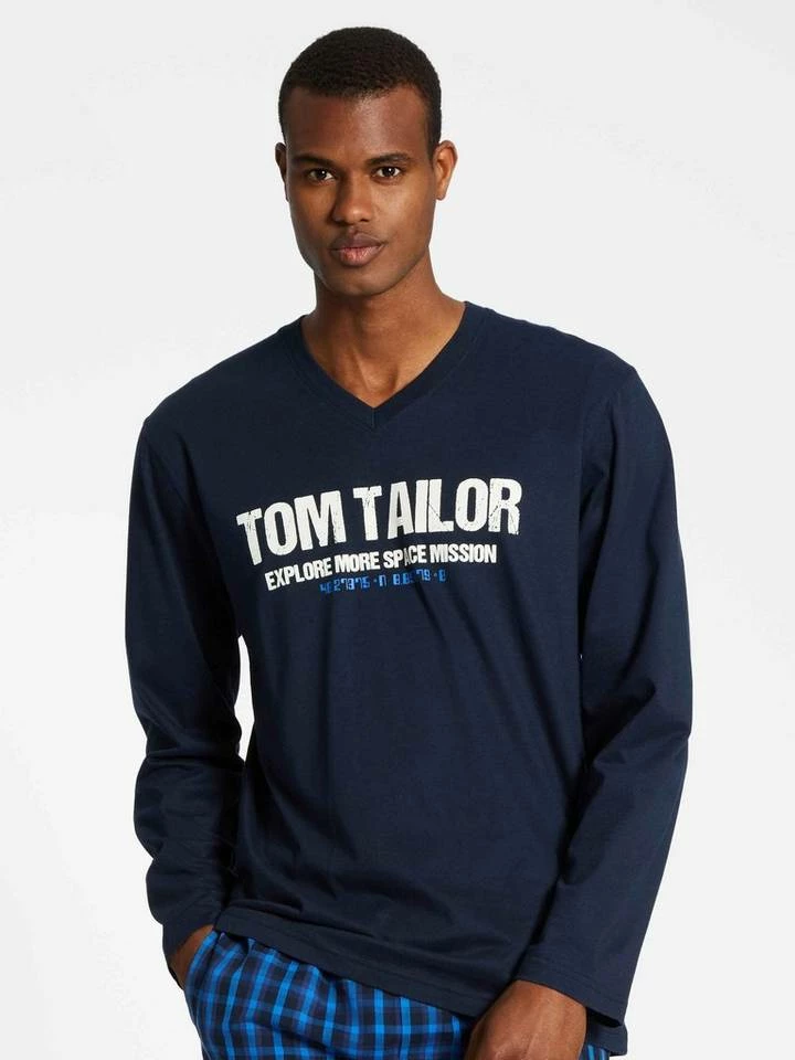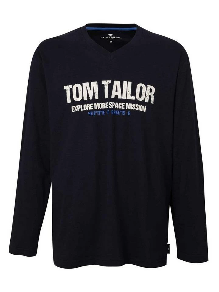 Langarm-Shirt aus 100% Baumwolle in Single Jersey-Qualität eingefasster V-Ausschnitt vielfältige Kombinationsmöglichkeiten Logo-Print und „Explore More Space Mission“-Print auf der Brust