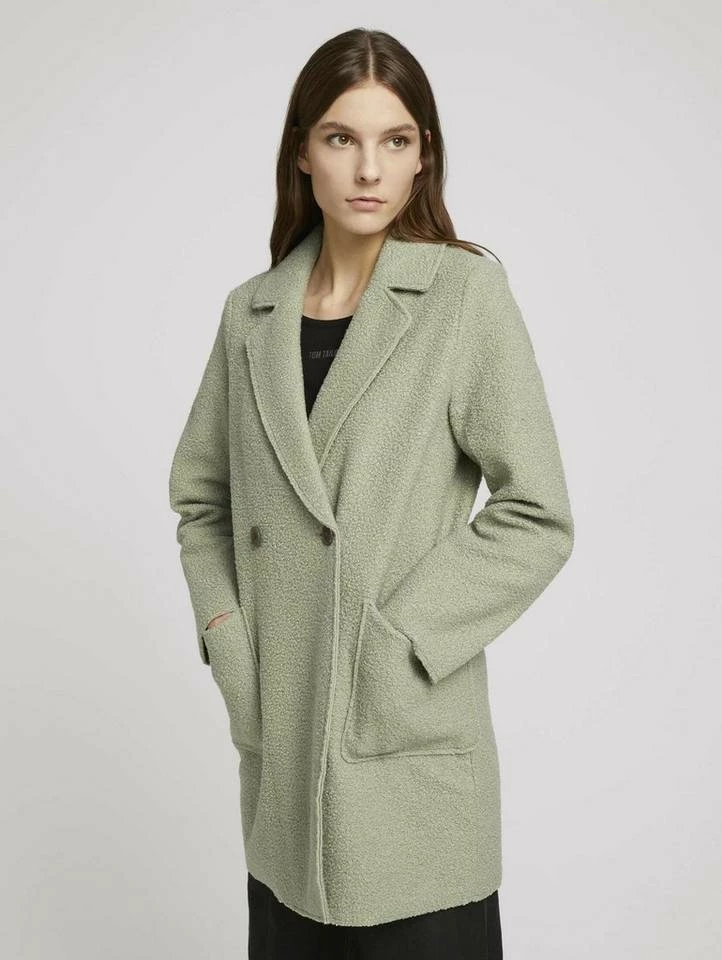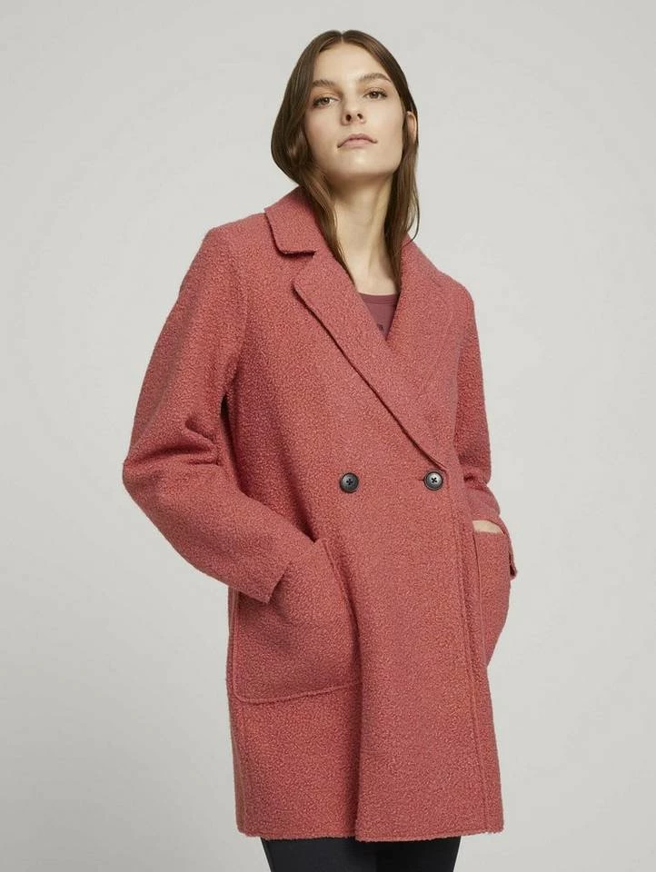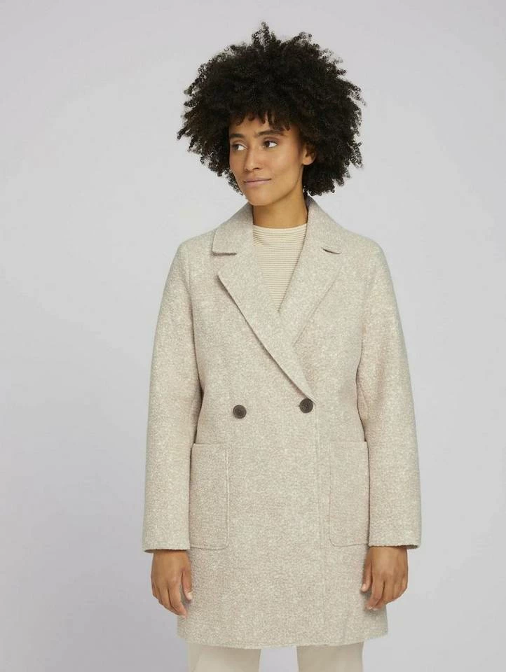 Loose Fit Boucle Mantel für Frauen (langärmlig mit Reverskragen und Knopfleiste) aus strukturiertem Boucle, Eingrifftaschen auf der Front
