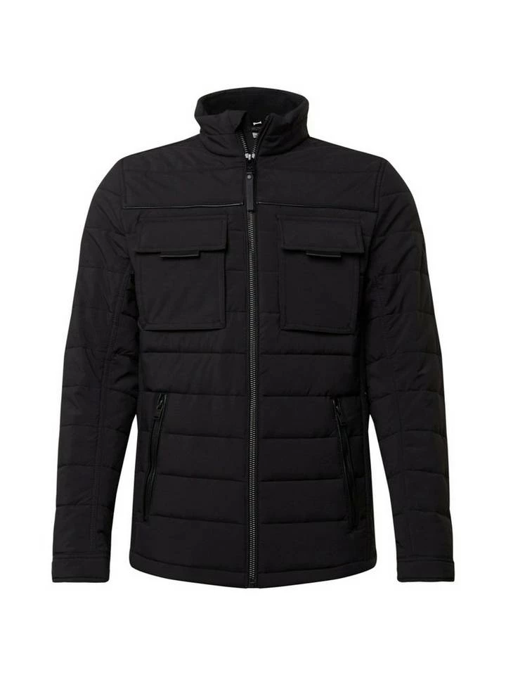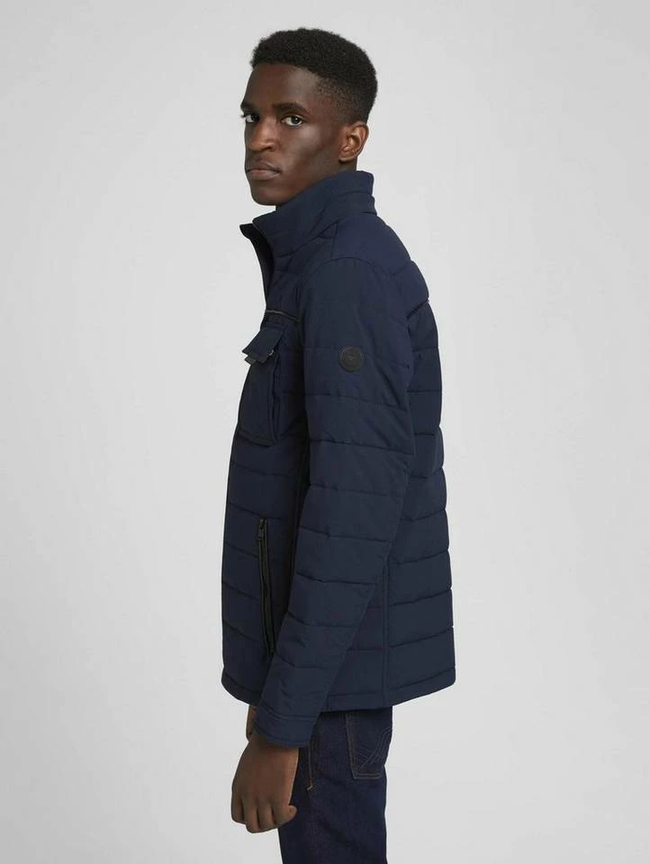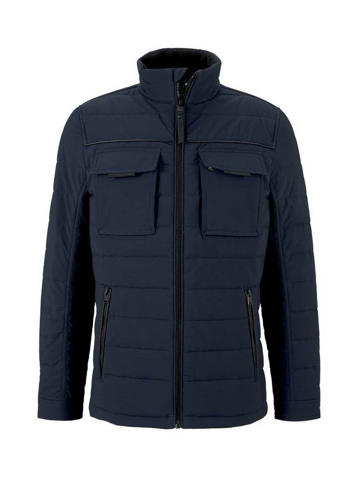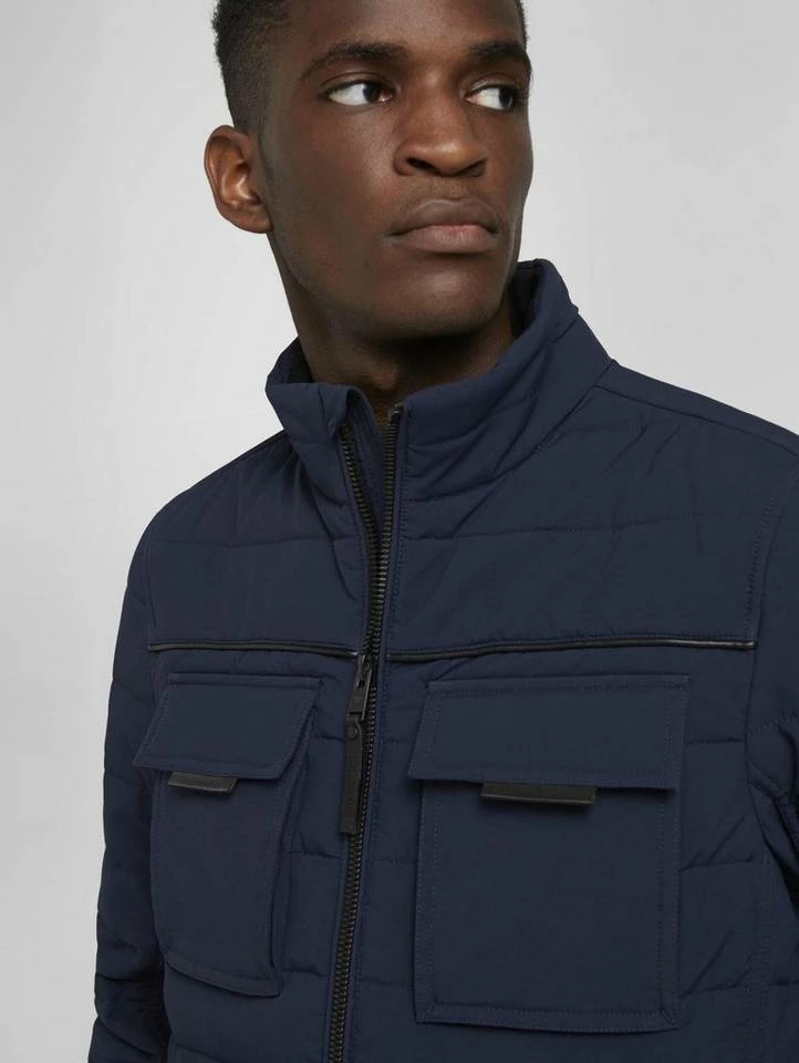 Shirt Jacke für Männer (langärmlig mit Stehkragen und Reißverschluss) aus glänzendem Gewebe, gesteppt, mit seitlichen Reißverschlusstaschen, mit Brusttaschen