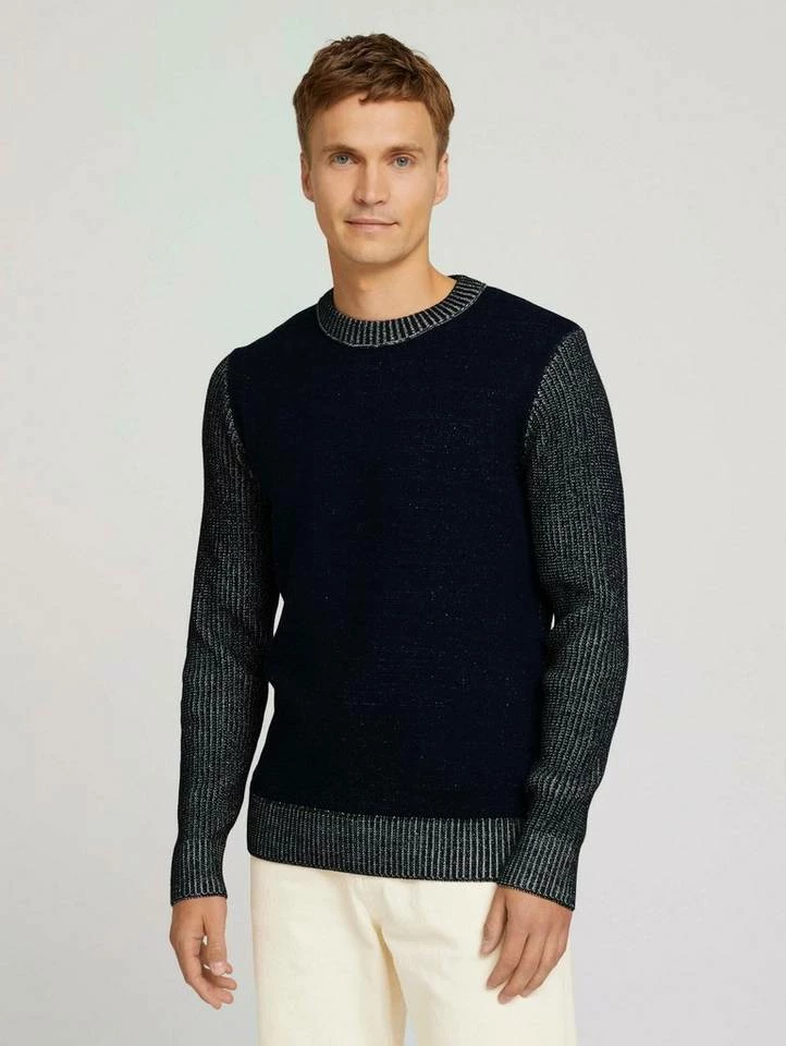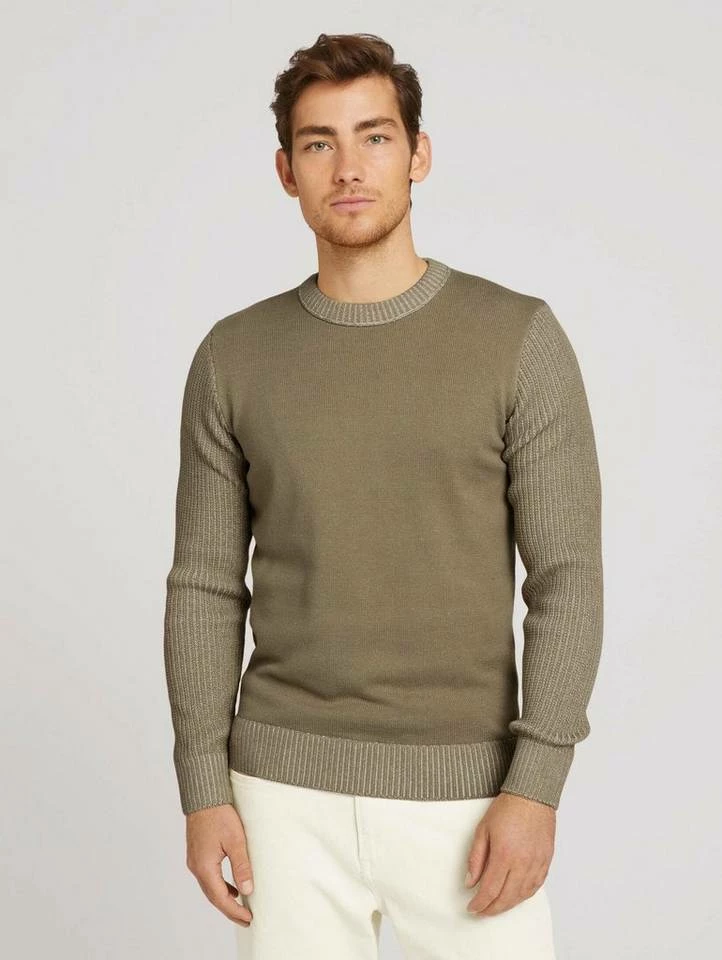Pullover mit Rippstruktur für Männer (langärmlig mit Rundhalsausschnitt) mit weicher und nachhaltiger Baumwolle, grober Ripp an Ärmeln und Kragen, in Melange Optik