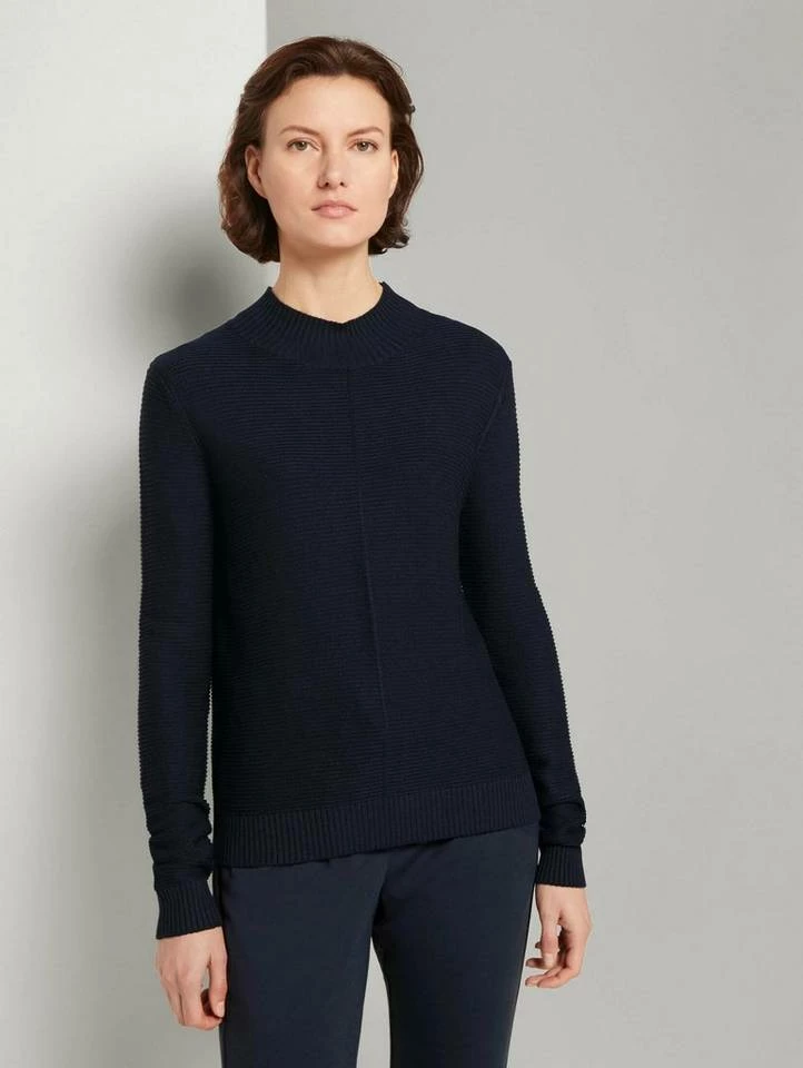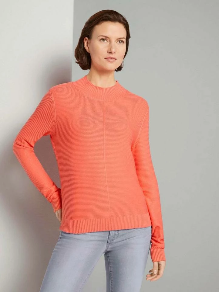 Strickpullover mit Ottoman Struktur für Frauen (langärmlig mit Rollkragen) aus Strick, mit Ottoman Struktur, mit Rippbündchen an den Saumkanten