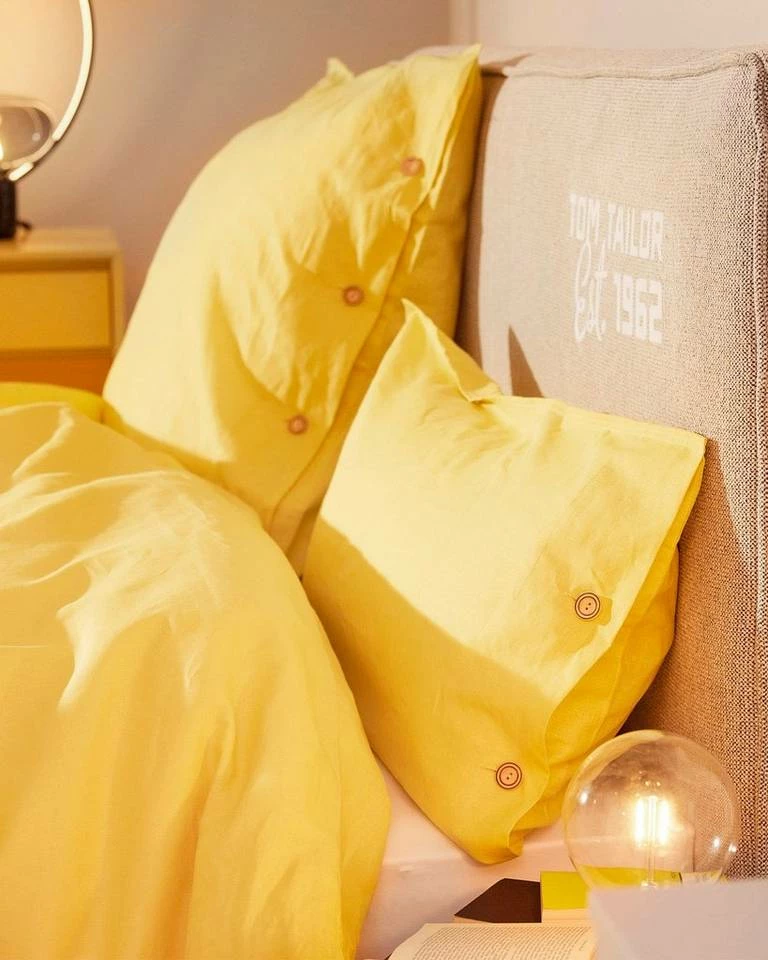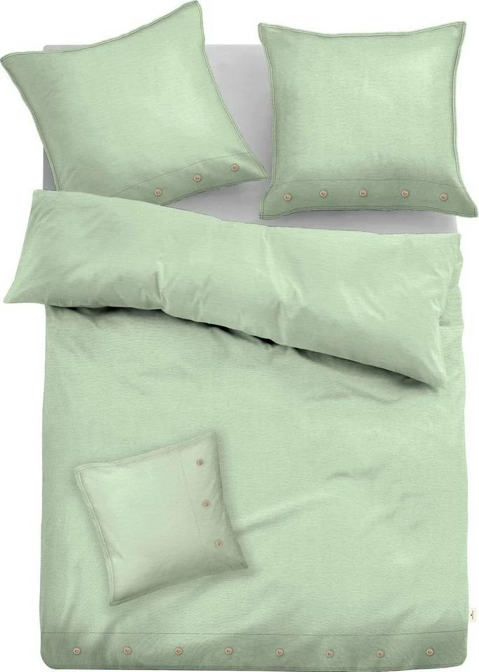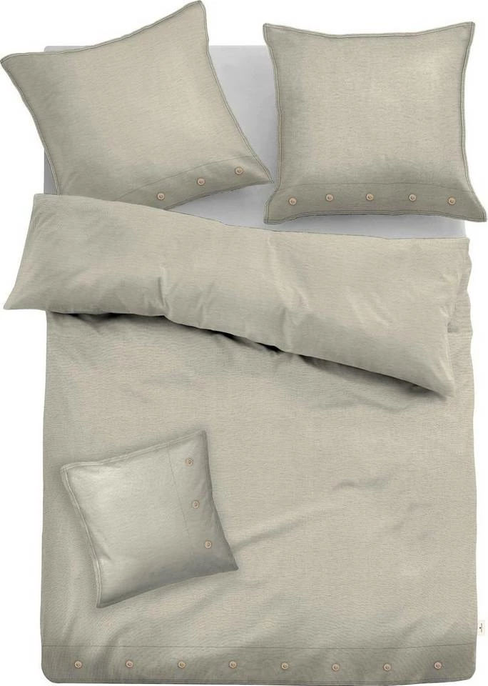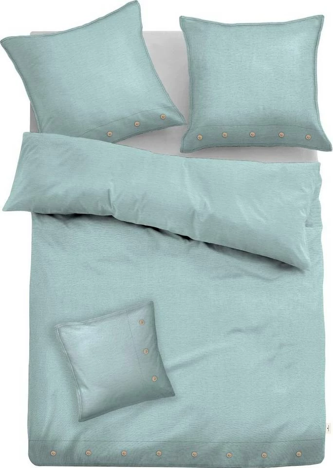Die unifarbige, gemäß GOTS organic Ecocert Greenlife 151694, zertifizierte Leinen Bettwäsche "Alisa“ der Marke TOM TAILOR wird durch die modernen Farben und den zwei verschieden großen Kissenbezügen garantiert zum Hingucker in Ihrem Schlafzimmer. Der Umwelt zu liebe, ist die Bettwäschegarnitur in dem 40 x 40 cm Kissenbezug verpackt. Die aus 70% Baumwolle und 30% Leinen hergestellte Bettwäsche punktet zudem mit ihren hautfreundlichen Eigenschaften und die atmungsaktive Stoffqualität sorgt für einen angenehmen Schlaf. GOTS garantiert, dass bei der Produktion keine gesundheitlich und ökologisch bedenklichen Farbstoffe und Hilfsmittel verwendet werden. Zudem wird eine nachhaltige Herstellung zugesichert. Die Baumwolle kommt aus einem kontrolliert biologischen Anbau. Kissen- und Deckenbezug sind mit einem dekorativen Knopfverschluss versehen und machen das Wechseln der Bettwäsche zum Kinderspiel. Die Garnitur ist bei bis zu 60° C maschinenwaschbar und trocknergeeignet.