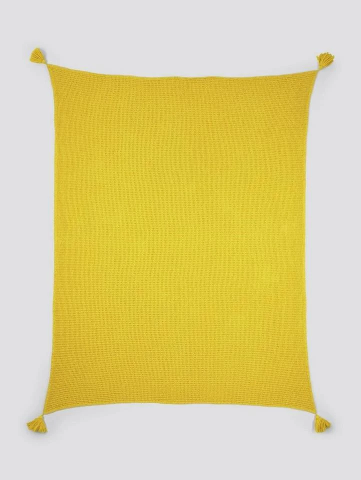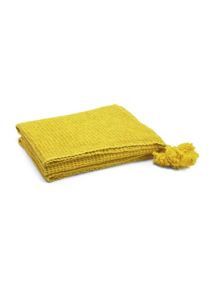 Decke mit Quasten für unisex (mit Waben-Musterung) aus reiner Baumwolle, mit Quasten an den Ecken, mit Logo-Flag