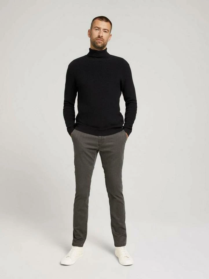 Gemusterte Slim Chinohose für Männer (mit Reißverschluss und Knopf) mit weicher und nachhaltiger Baumwolle, mit Strukturmuster, seitliche Eingrifftaschen, Paspeltaschen hinten