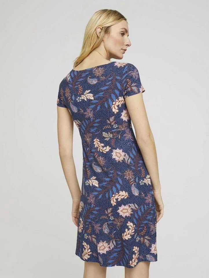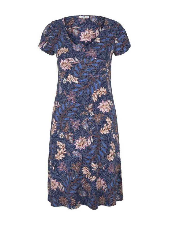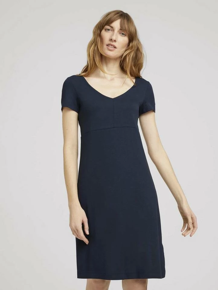 Jerseykleid mit V-Ausschnitt für Frauen (kurzärmlig mit V-Ausschnitt) aus dehnbarem und bequemen Jersey, erhältlich in unifarben und mit Blumenmuster