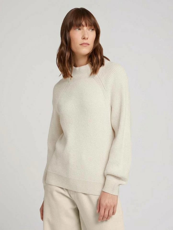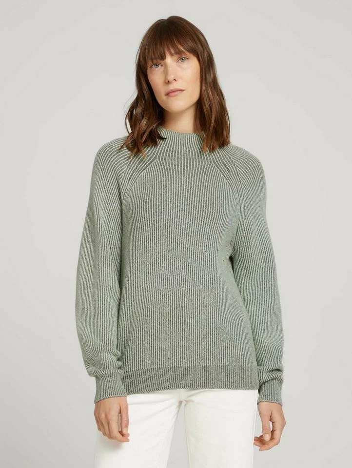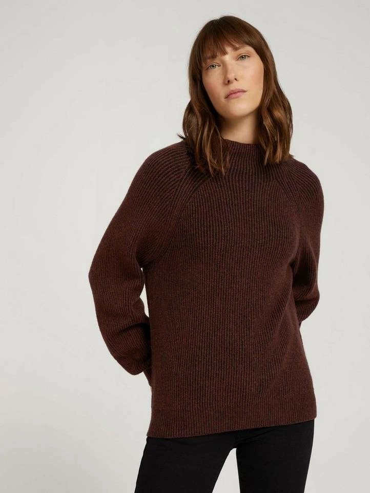 Stehkragenpullover mit recyceltem Polyester für Frauen (langärmlig mit Stehkragen) mit pflegeleichten und recycelten Polyesterfasern, grober Ripp, mit Raglanärmeln