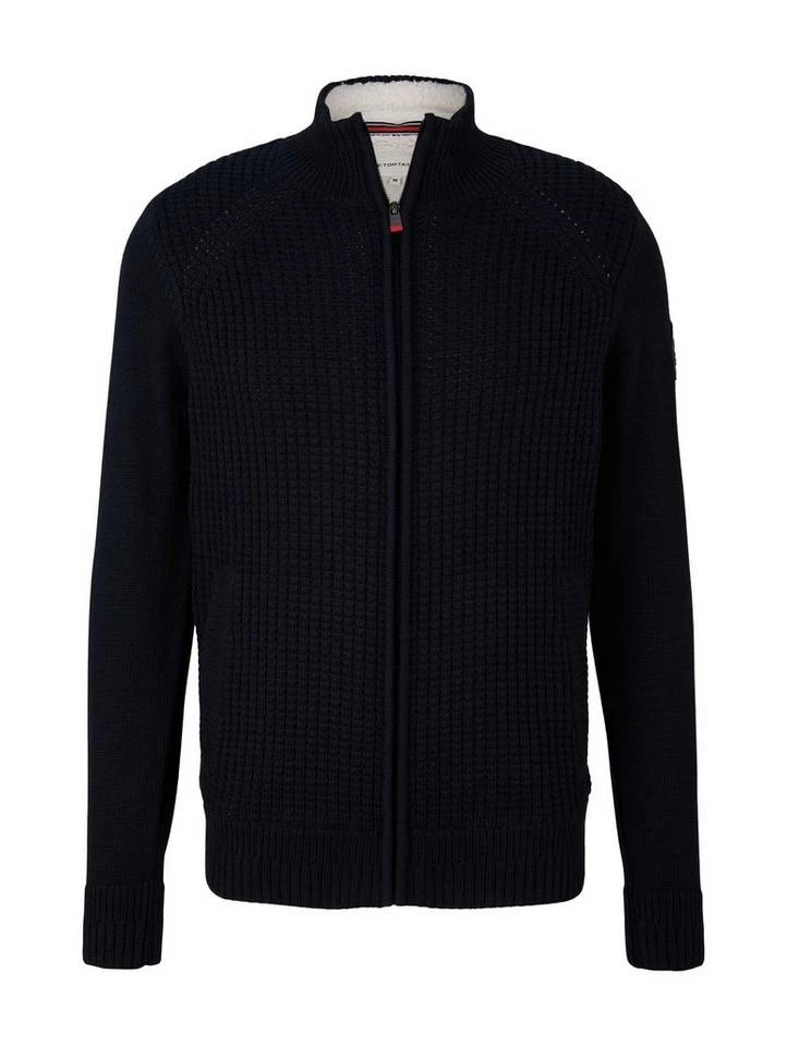Strickjacke mit Stehkragen und Reißverschluss für Männer (langärmlig mit Stehkragen und Reißverschluss) mit Bio-Baumwolle aus nachhaltigem Anbau, gerippte Frontseite, mit seitlichen Eingrifftaschen