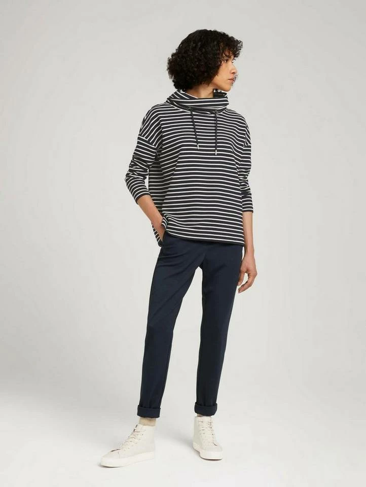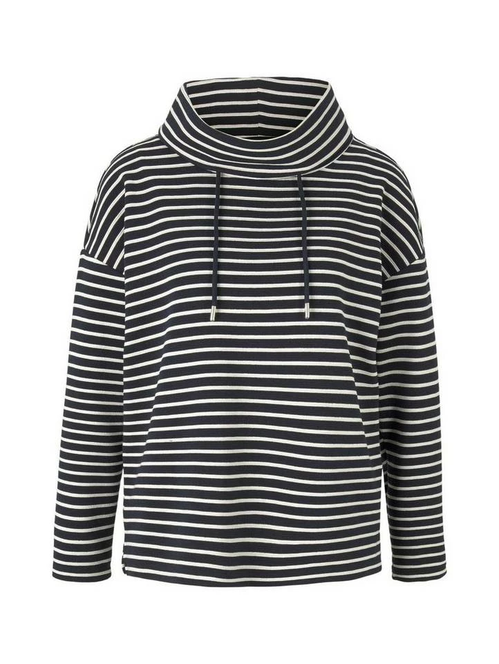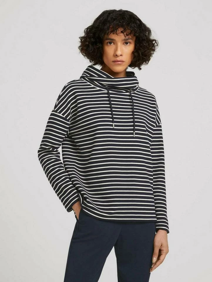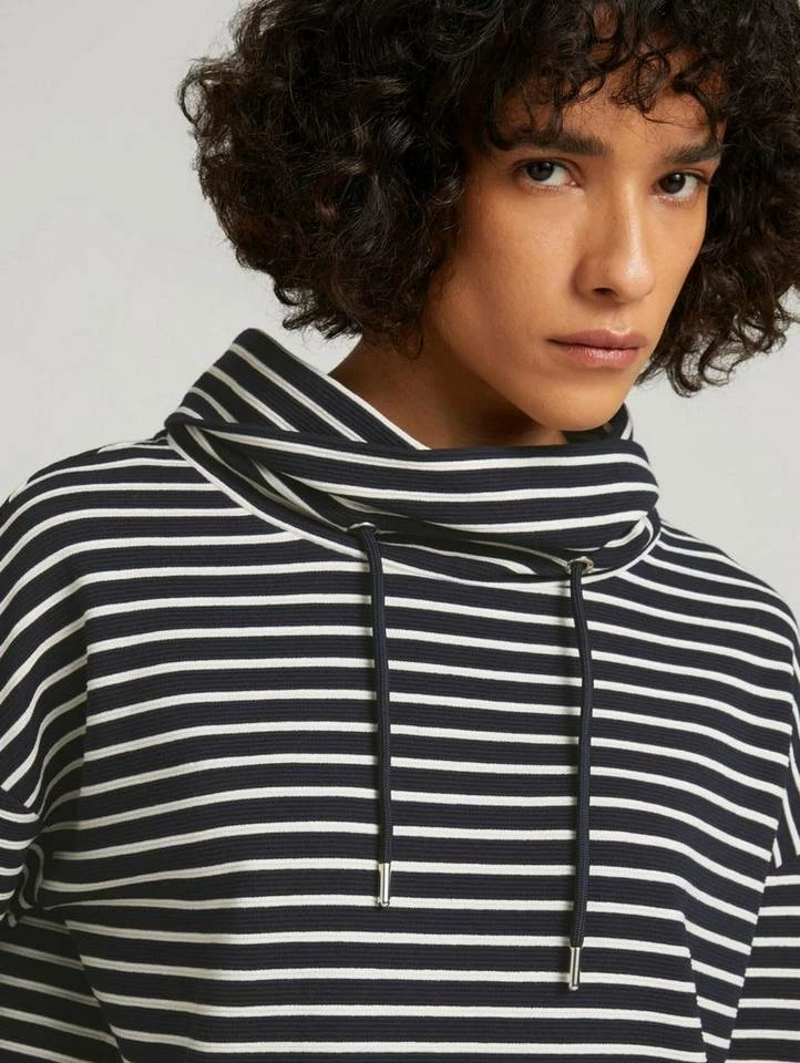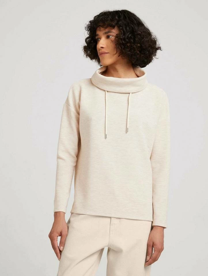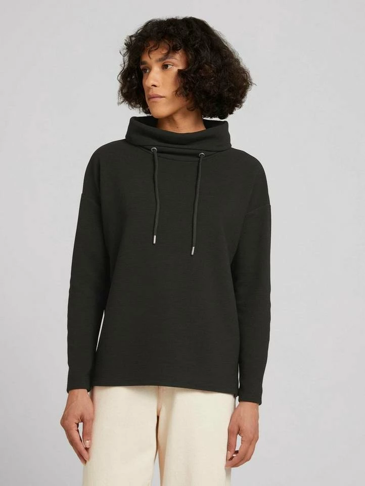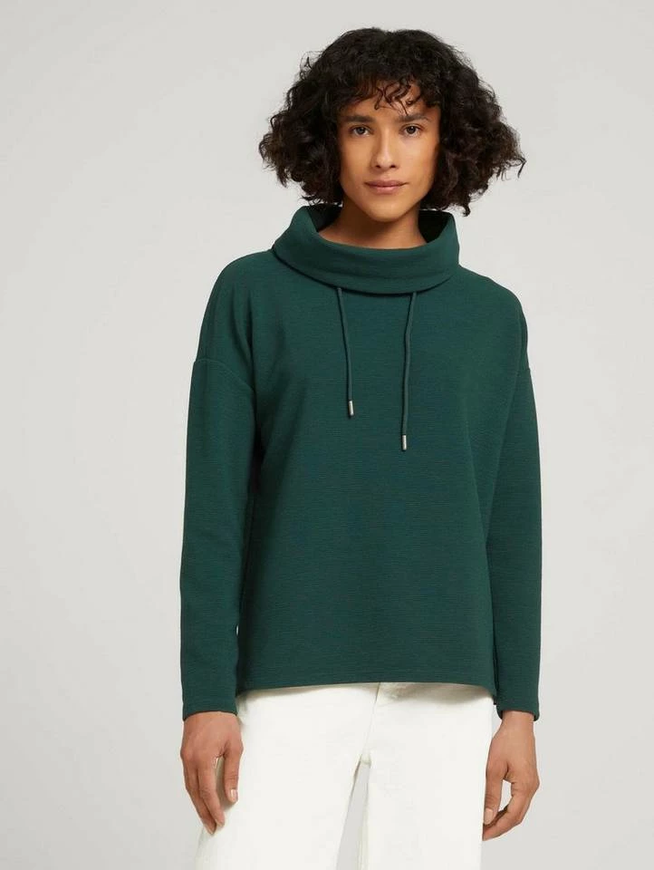 Strukturiertes Sweatshirt mit Rollkragen für Frauen (langärmlig mit Rollkragen) aus pflegeleichtem Gestrick, vertiefte Schulternähte, strukturiert, kurze Seitenschlitze, Tunnelzug durch den Kragen