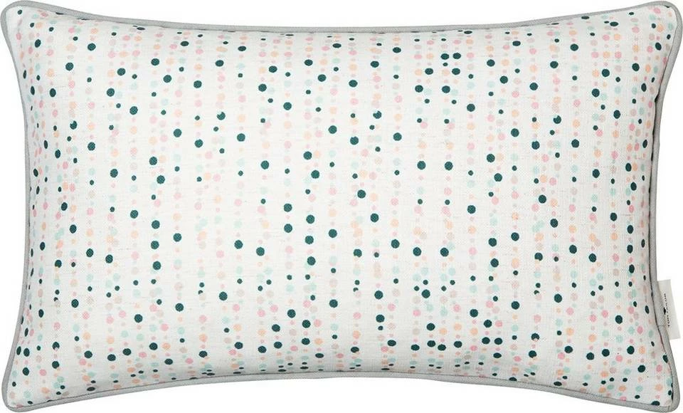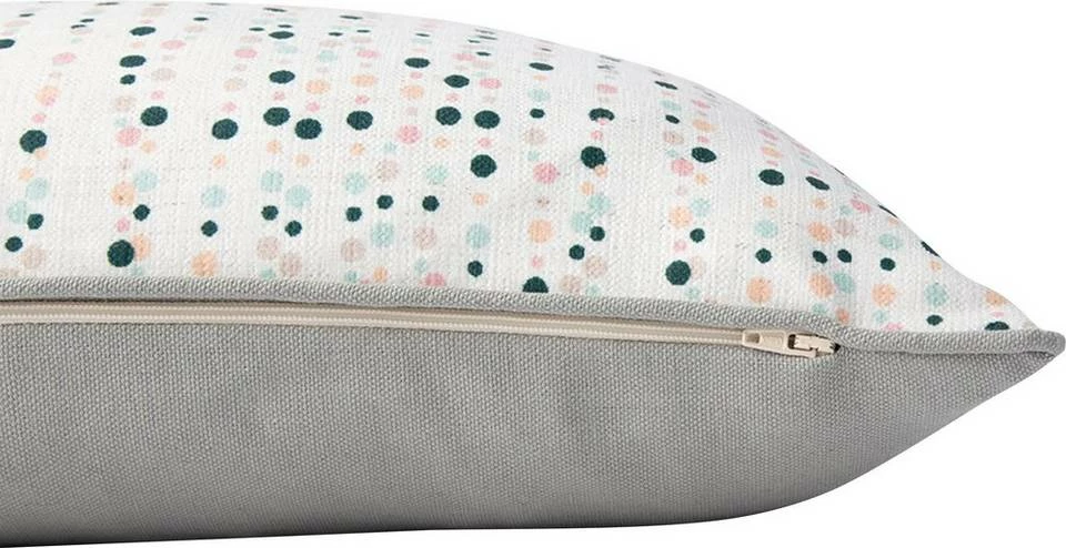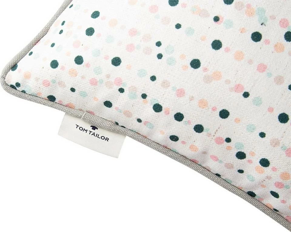Bunt, verspielt und extravagant: Die Zierkissenhülle „Dotty Lines“ aus der TOM TAILOR Kollektion ist der perfekte Hingucker für Ihren Wohnungsraum. Moderne Punkte auf hellem Grund, die harmonisch aufeinander abgestimmt sind, bringen gute Laune und frischen Wind in Ihr Ambiente und sorgen für ein stimmiges Gesamtbild. Die Rückseite hingegen beruht auf einem unifarbenen Grund. Eine farbige Paspel die die Kissenhülle umgibt, macht den Look komplett. Dank einem praktisch verdeckten, eingenähten Reißverschluss kann der Bezug bei Bedarf einfach abgezogen und pflegeleicht bei 30°C Schonwaschgang gereinigt werden. Die Hülle ist in der Größe 30 x 50 cm und in zwei verschiedenen aufeinander angepassten Farbkombinationen erhältlich.
