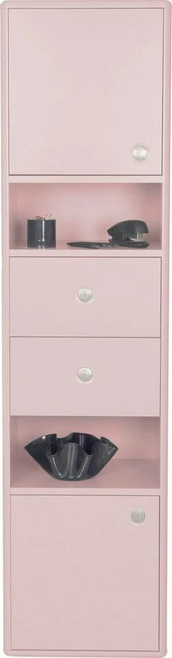 Ein lebensfroh und arbeitsfreundlich eingerichtetes Büro oder Homeoffice ermöglicht der trendige Aktenschrank »COLOR OFFICE« aus der Kollektion von TOM TAILOR. Designt ist er im ästhetischen skandinavischen Look mit moderner Farbe von Fronten und Korpus. Zur Auswahl steht das hochwertige Office-Möbel in mehreren Farbvarianten, wodurch es sich ideal passend zum vorhandenen Interieur wählen lässt. Einen modernen Akzent setzen die dekorativen TOM TAILOR Knopfgriffe. Stauraum und Stellflächen für Utensilien wie Aktenordner stellt der Büroschrank hinter den beiden Türen zur Verfügung. Weitere Utensilien lassen sich in den beiden mittigen Schubladen und den offenen Fächern aufbewahren. Die Schubladen und Türen sind bei diesem hochwertigen Schrank mit einer Push-to-Open-Funktion ausgestattet und lassen sich komfortabel öffnen. Farbe ins Arbeitszimmer bringt der trendige TOM TAILOR Aktenschrank »COLOR OFFICE«.