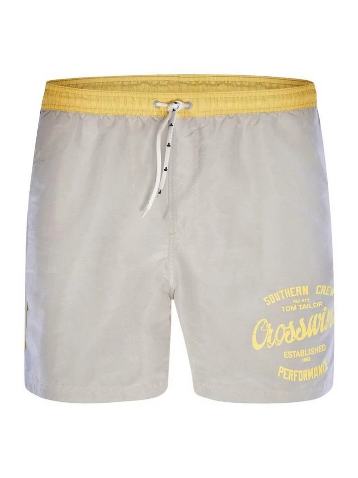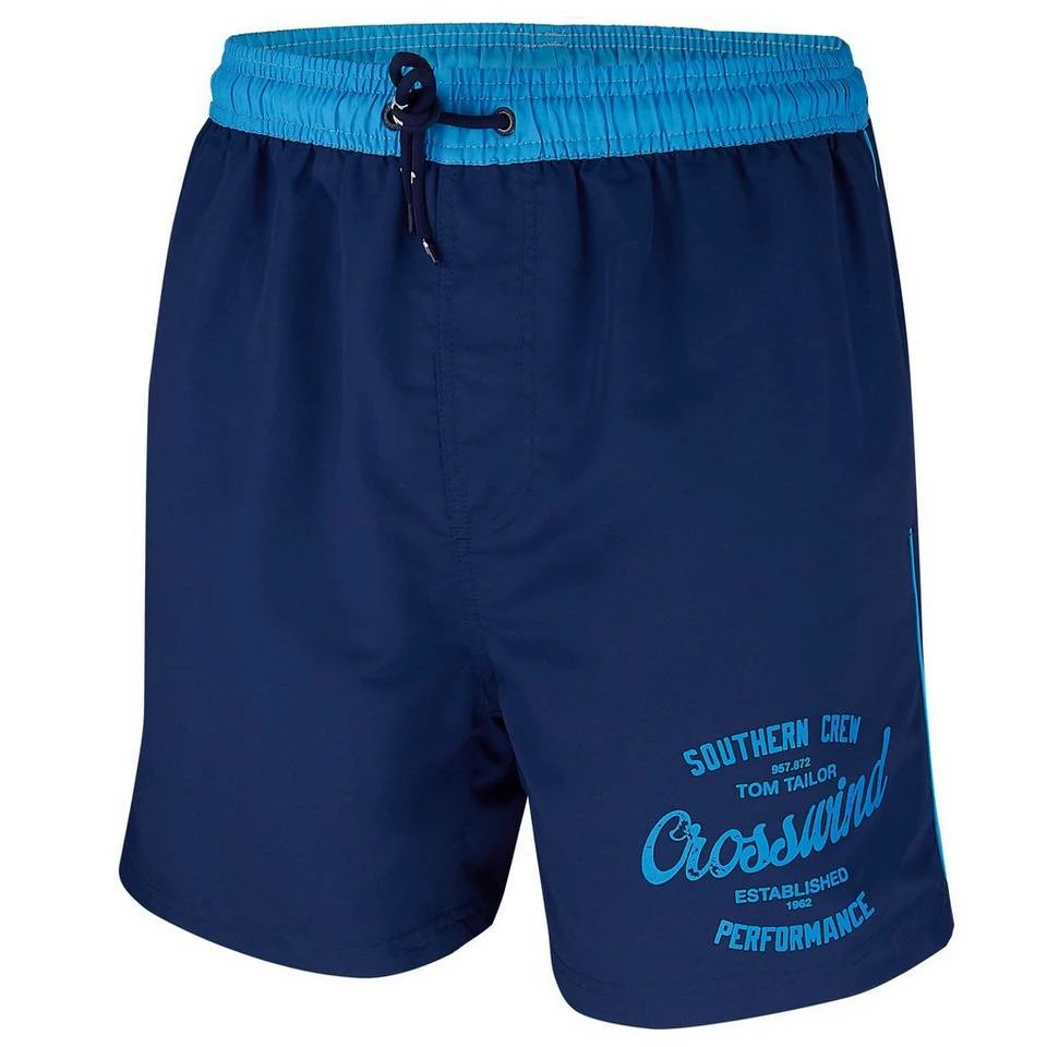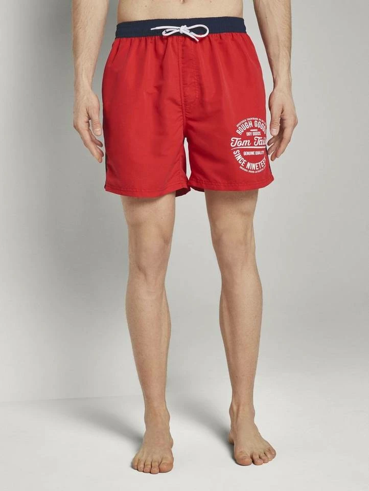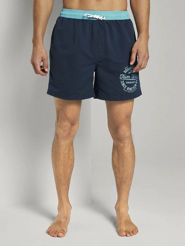- Tom Tailor Schriftzug / Motiv auf dem linken Bein, seitliche Paspelierung in hellblau, eingenähtes Größenetikett hinten innen unter dem Bund