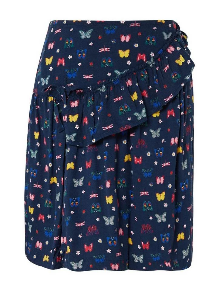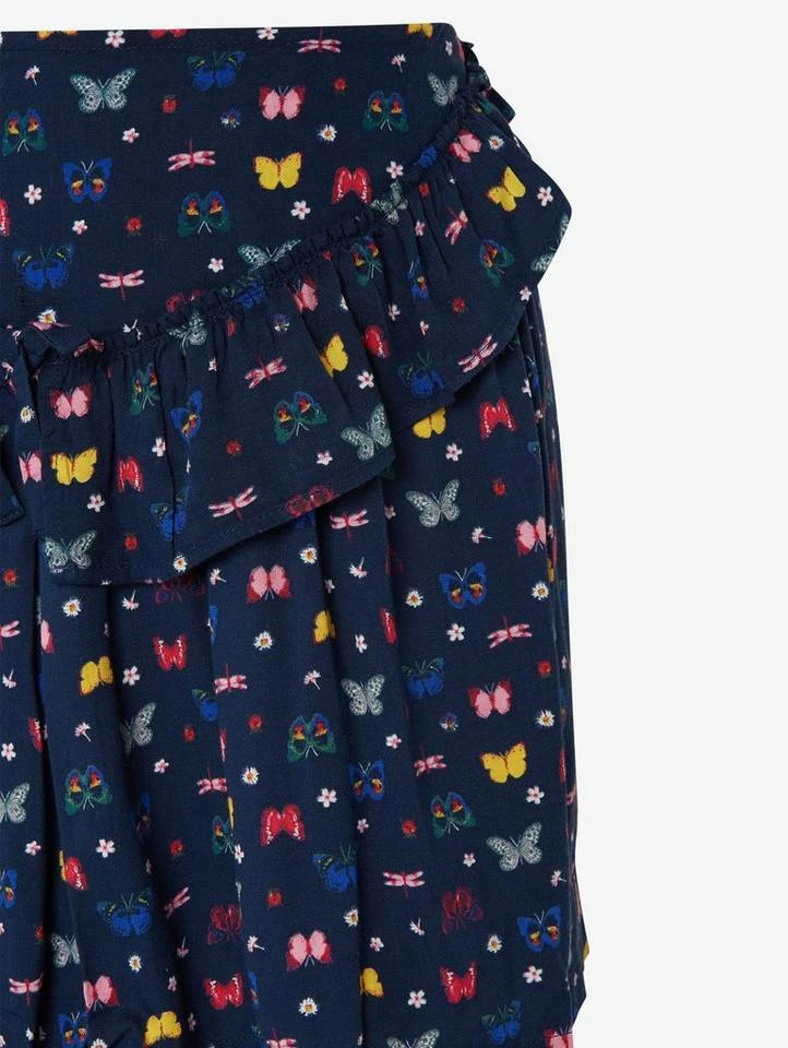 Gemusterter Rock mit Volant für Mädchen (mit elastischem Bund) aus Twill, ganzflächig mit Schmetterling-Print, mit Volant vorne