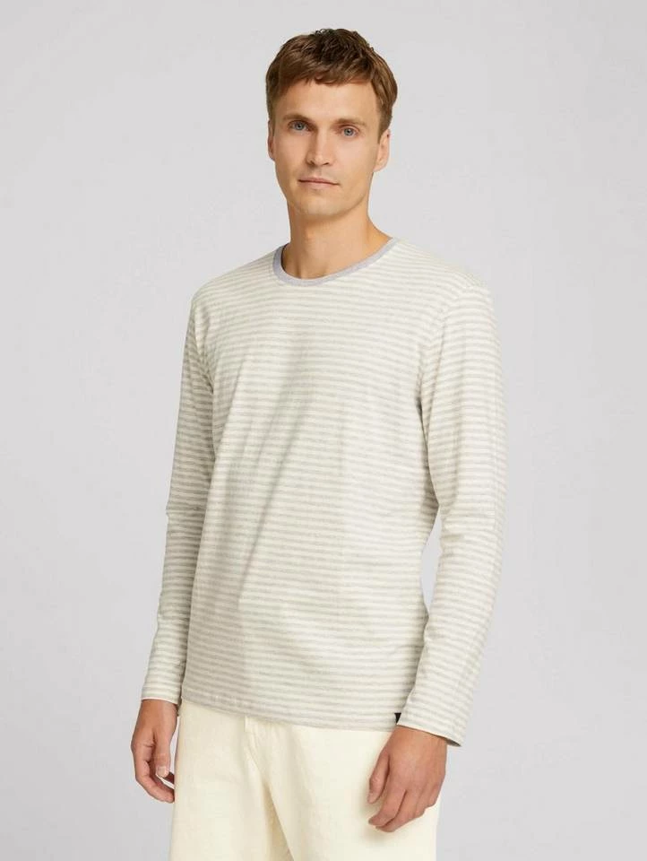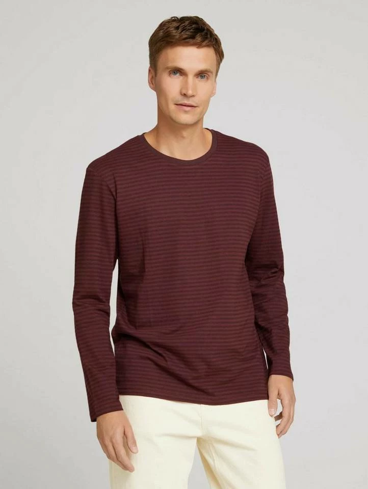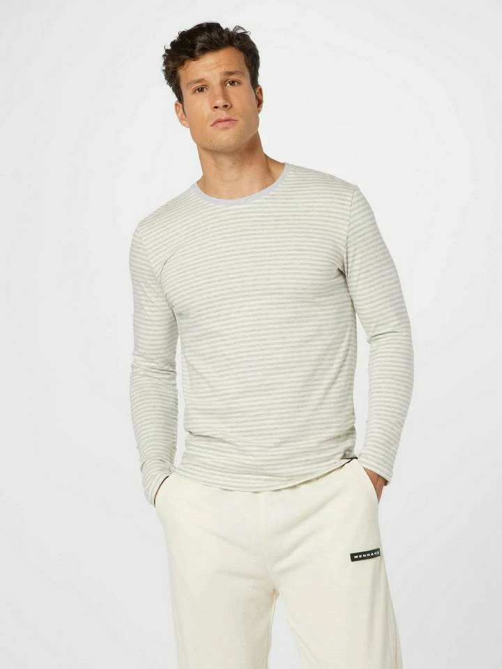 Gestreiftes Langarmshirt für Männer (langärmlig mit Rundhalsausschnitt) mit weicher und nachhaltiger Baumwolle, gestreift, Rippbündchen am Ausschnitt