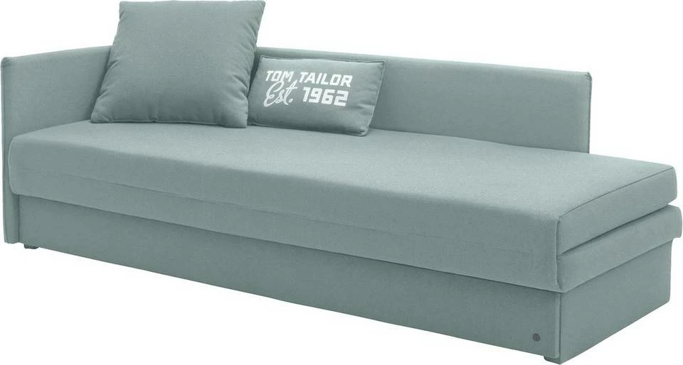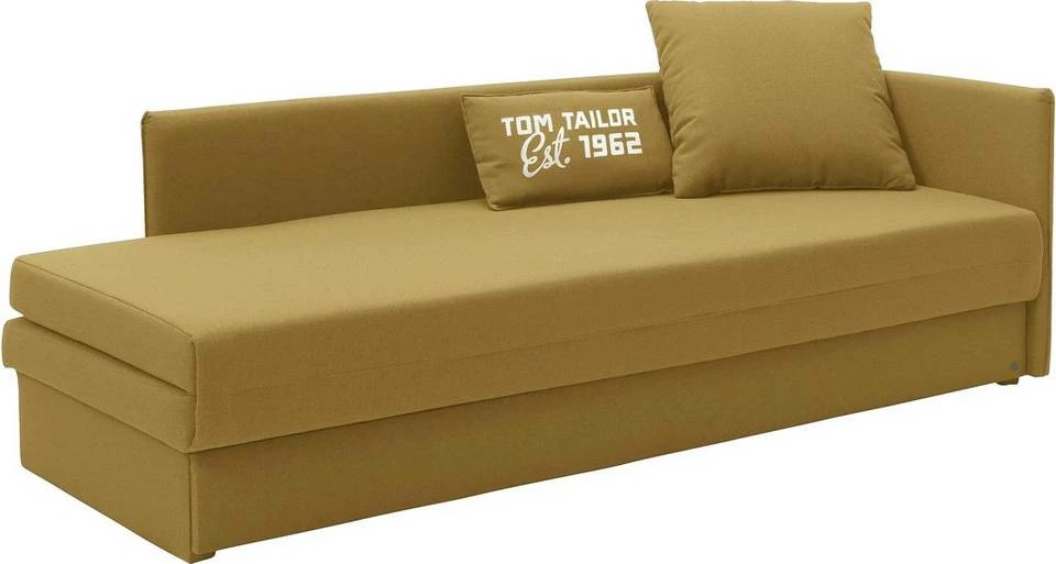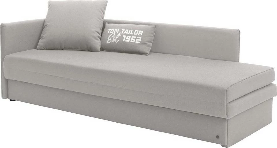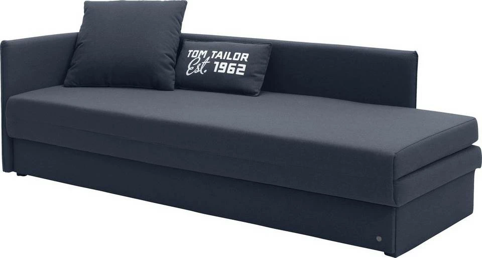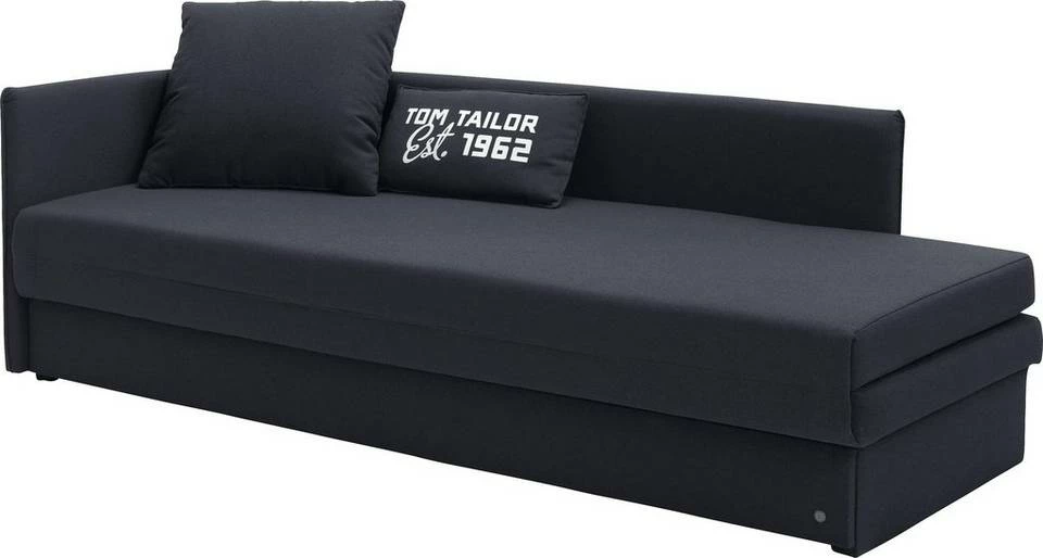 Als stylisches und funktionales Möbel überzeugt das hochwertige Schlafsofa »GUEST« der Lifestylemarke TOM TAILOR. Designt ist es in schlichter Linienführung und modern unifarbenem Bezugsstoff. Erhältlich ist das Qualitätsmöbel in mehreren Trendfarben, sodass es sich harmonisch passend oder bewusst kontrastierend zur vorhandenen Einrichtung wählen lässt. Im Lieferumfang enthalten sind 2 Zierkissen, eines davon ist mit dem markentypischen TOM TAILOR-Print verziert. Die Couch lässt sich auch als unkompliziertes Gästebett oder Tagesbett nutzen. Dank der kompakten Maße ist die Schlafcouch auch für kleine Räume eine passende Wahl. Ganz nach räumlichen Gegebenheiten ist die Lehne für links oder rechts bestellbar. Mit wenigen Handgriffen lässt die variable Couch sich vom komfortablen Sitzmöbel in ein bequemes Bett mit großzügiger Liegefläche verwandeln. Kissen- und Bettzeug für spontane Übernachtungsgäste können tagsüber in dem geräumigen Bettkasten aufbewahrt werden. Praktisch: Der Aufbauservice ist bei dem hochwertigen TOM TAILOR Schlafsofa »GUEST« inklusive.