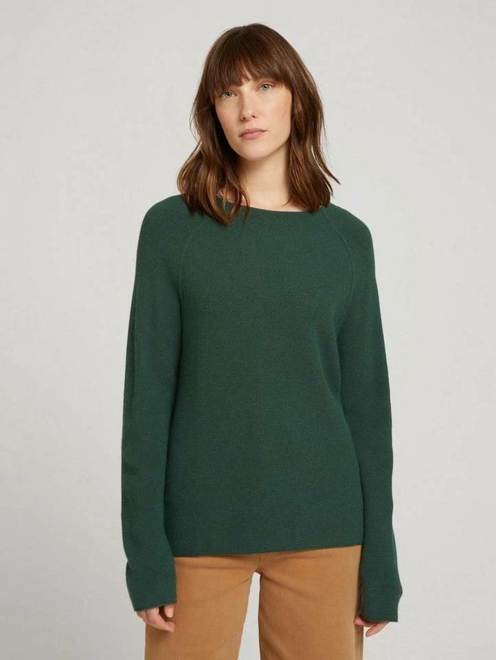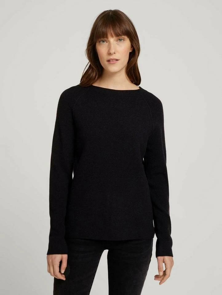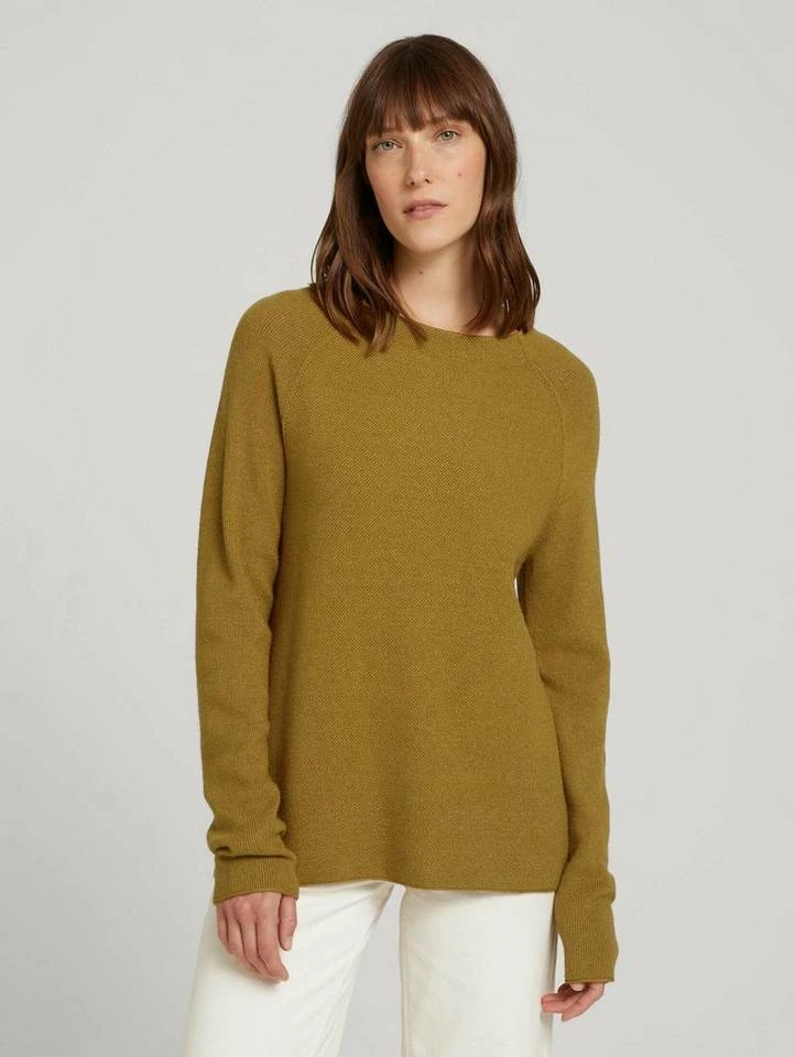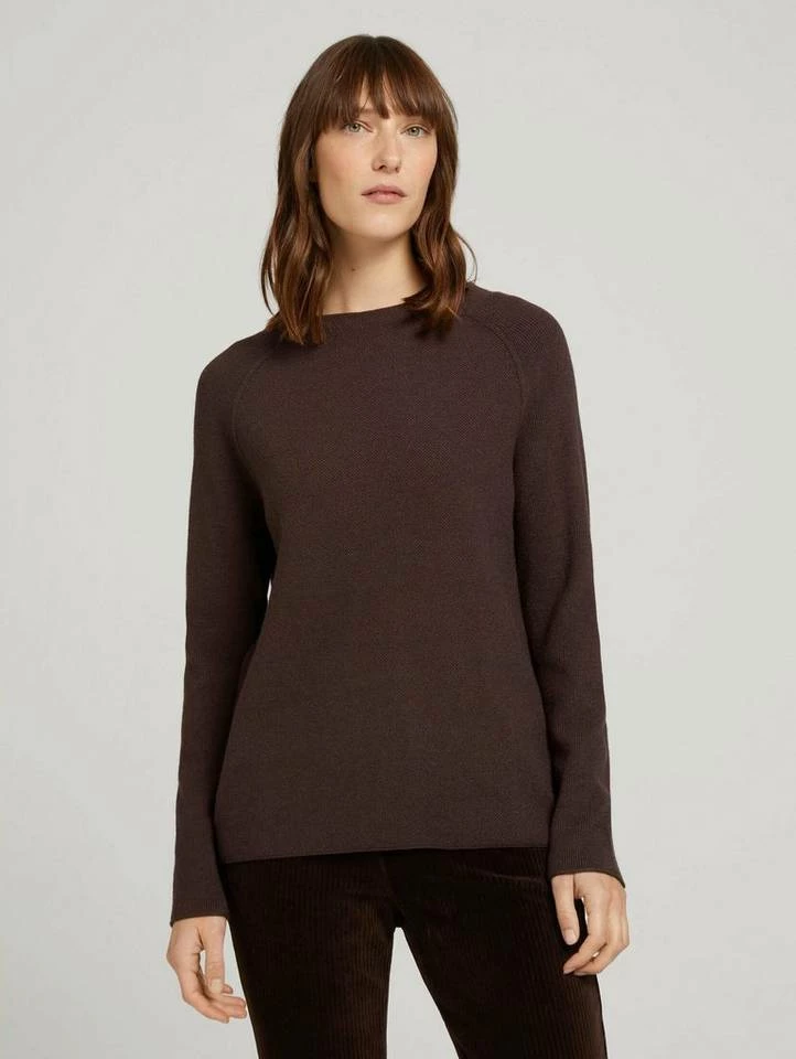 Pullover mit Raglanärmeln für Frauen (langärmlig mit Stehkragen) aus Strick, mit Raglanärmeln, im Strukturmix